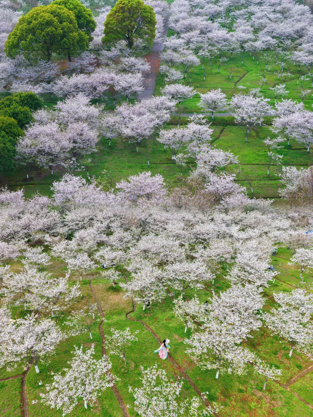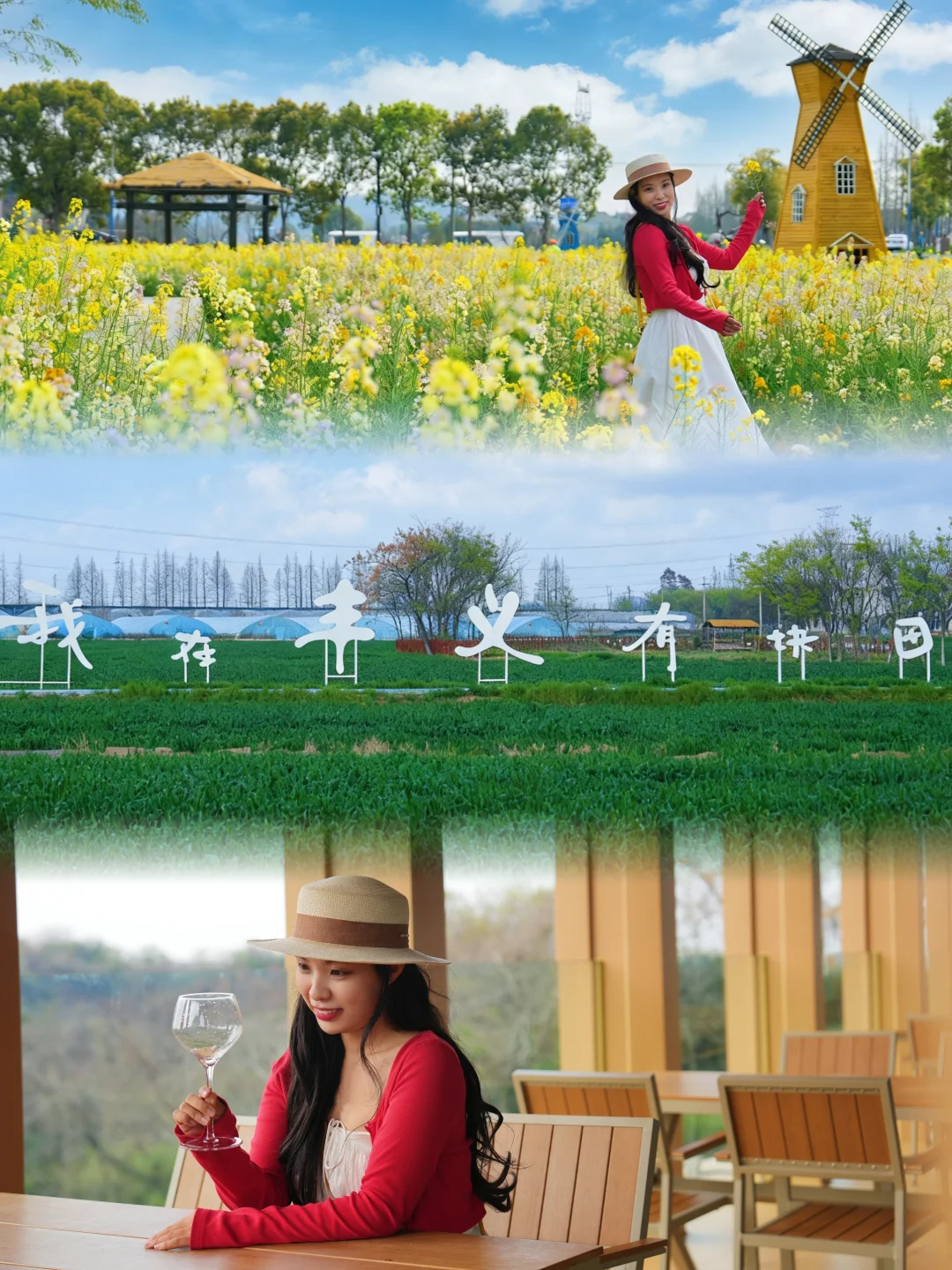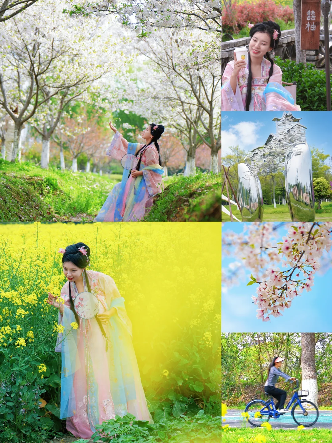 租一辆共享单车,沿着樱花林、梅花林、二月兰、油菜花海一路向前,路过稻田咖啡、雕塑公园(左野营地)