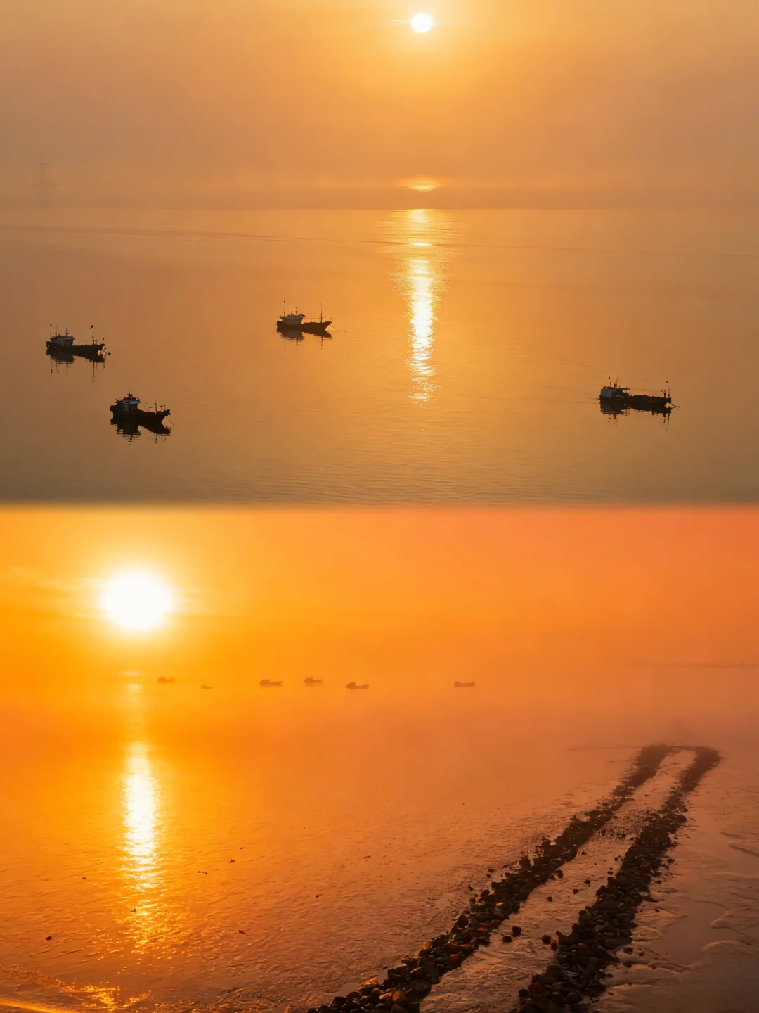 早起去余华笔下“最美日出”的观海园,等一轮朝阳从海平面升起,晨雾、海浪、金光