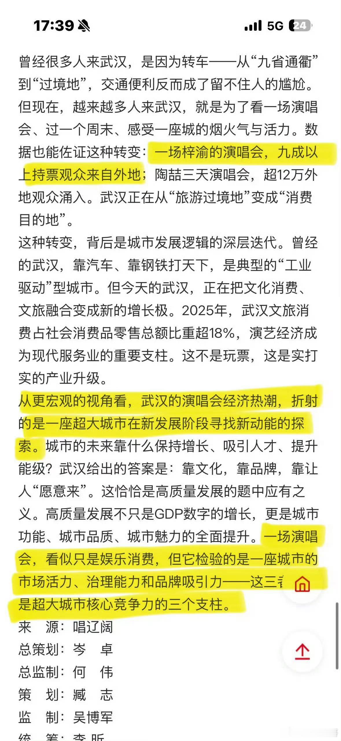 湖北那边到底有多爱梓渝啊,各种官媒社媒三天两头就要报道一次他年初连续三场的武汉演唱会,给当地娱乐文旅线下消费带来的贡献