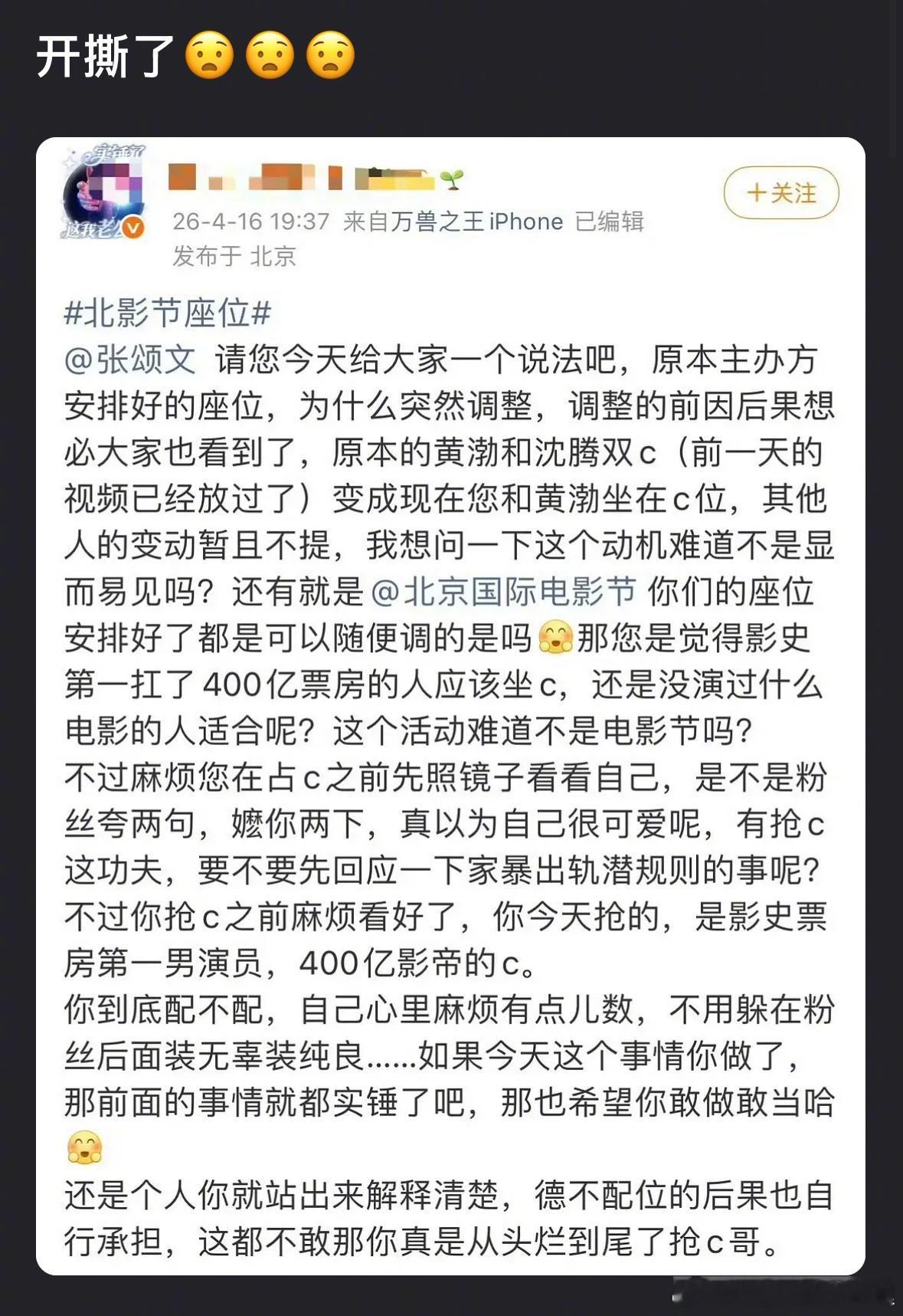 开撕了,所以是张颂文抢了沈腾的C位吗?沈腾 座位张颂文高叶北影节坐一起
