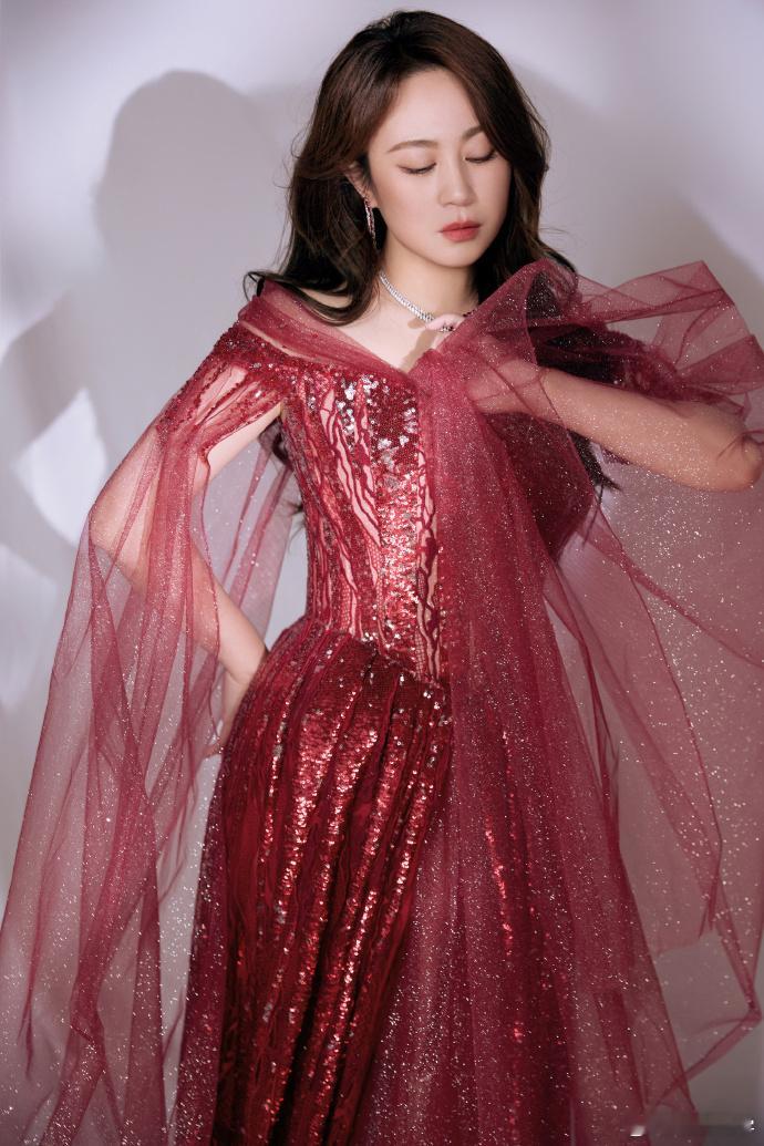 马丽裙子红裙往那儿一站,整个人都像缀满星光一样亮眼