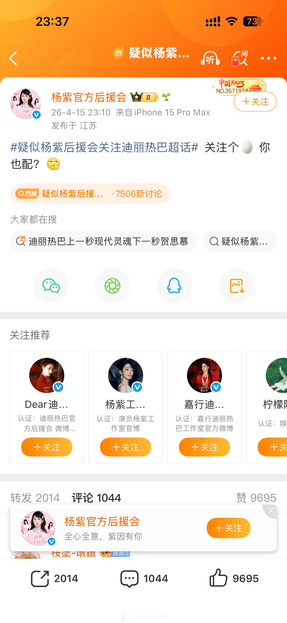 杨紫官方后援会暂停运营了,后面会招新重组看了下ip地址,和之前说「关注个🥚」的