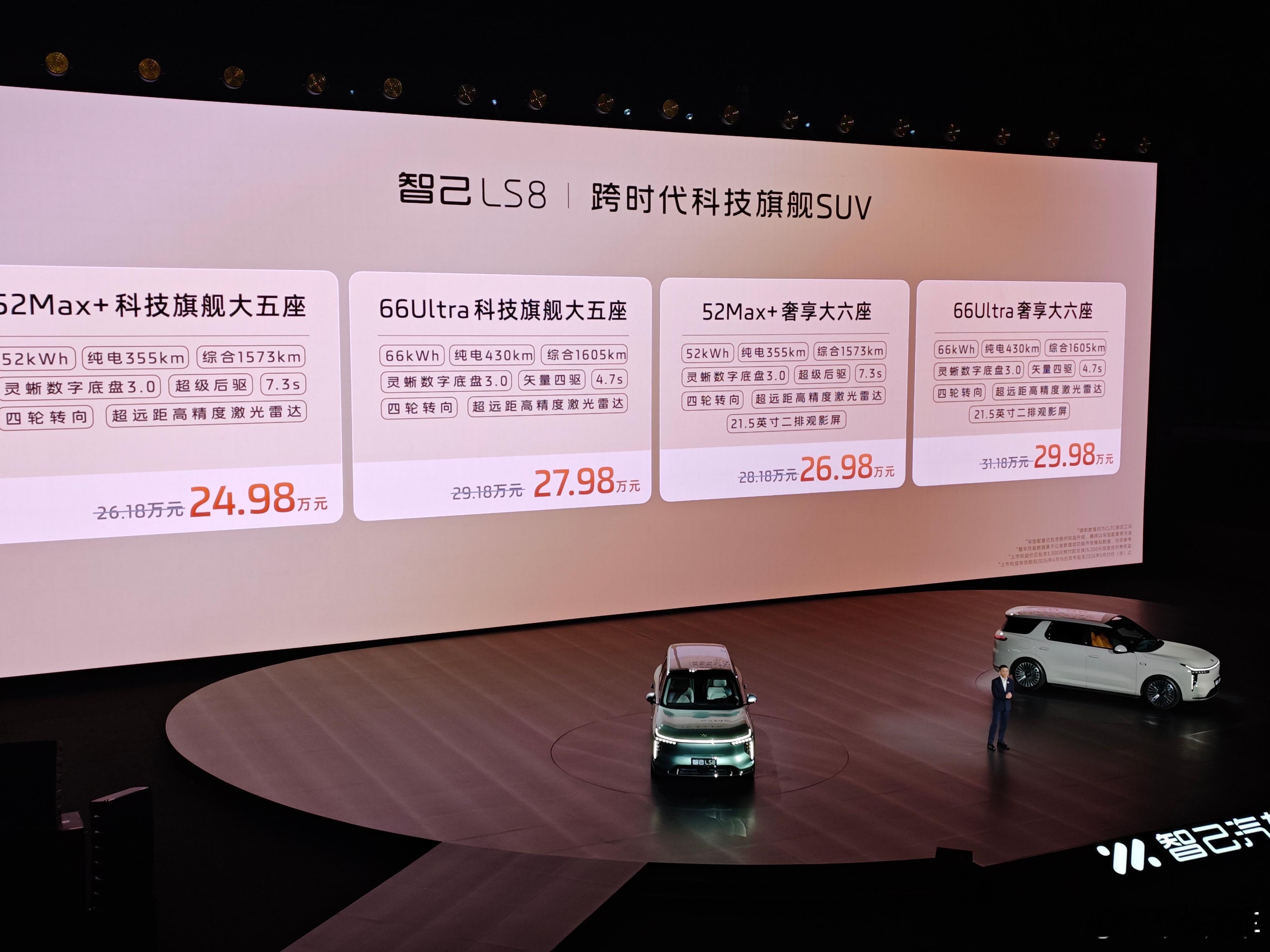 一个是试图重新划定旗舰物理门槛的智己LS8,用30万内实现全系标配四轮转向、空悬与线控制动的底盘革命,把衡量旗舰SUV的标准从排量大小变为了底盘优劣