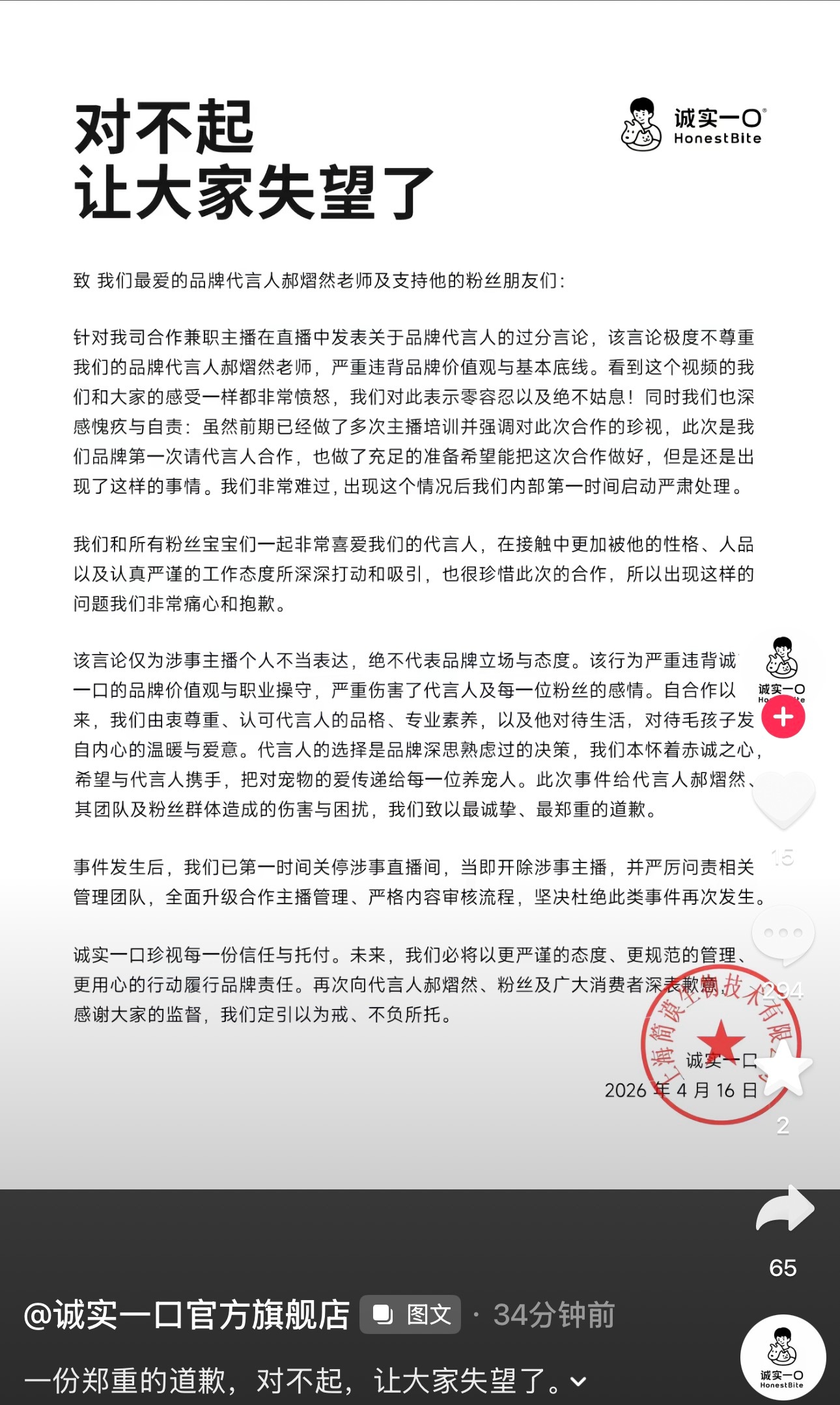 诚实一口 郝熠然 前面那个虐猫辞退闹剧还没凉透,现在又来这套,品牌方的团队内部是不是全是卧底?