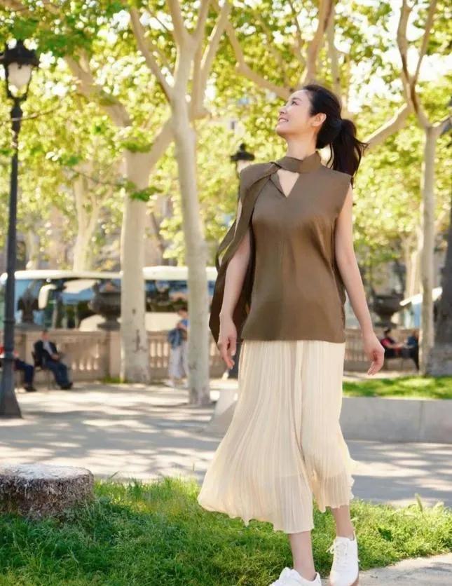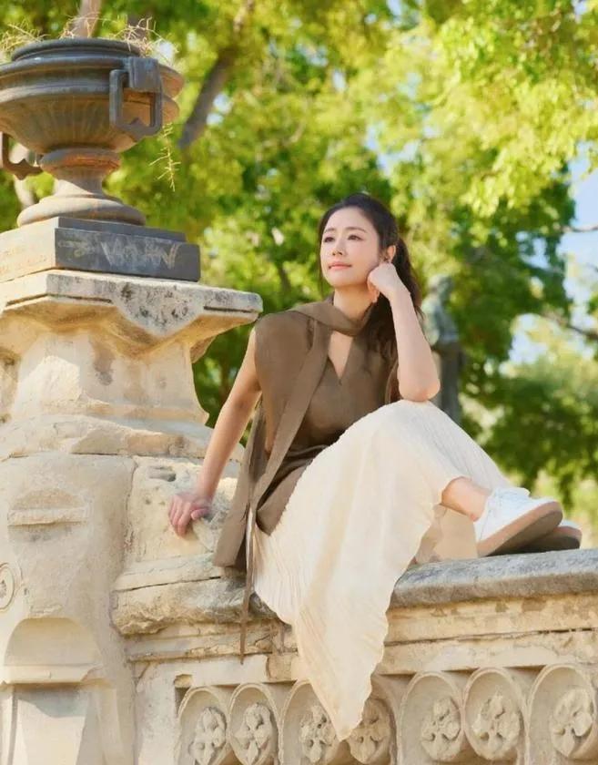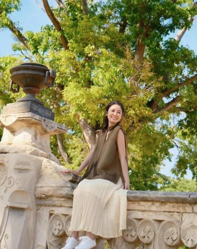 谁懂啊!林心如这组私服也太有气质了!棕色飘带无袖上衣+米白色百褶半裙,温柔又减龄,完全看不出真实年龄✨