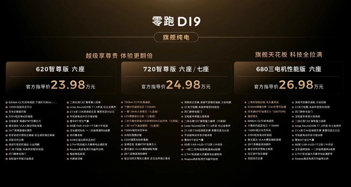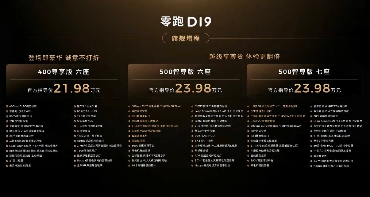 零跑D19定价21.98万起!不管增程还是纯电,双芯片、空悬、大冰箱大床这些配置