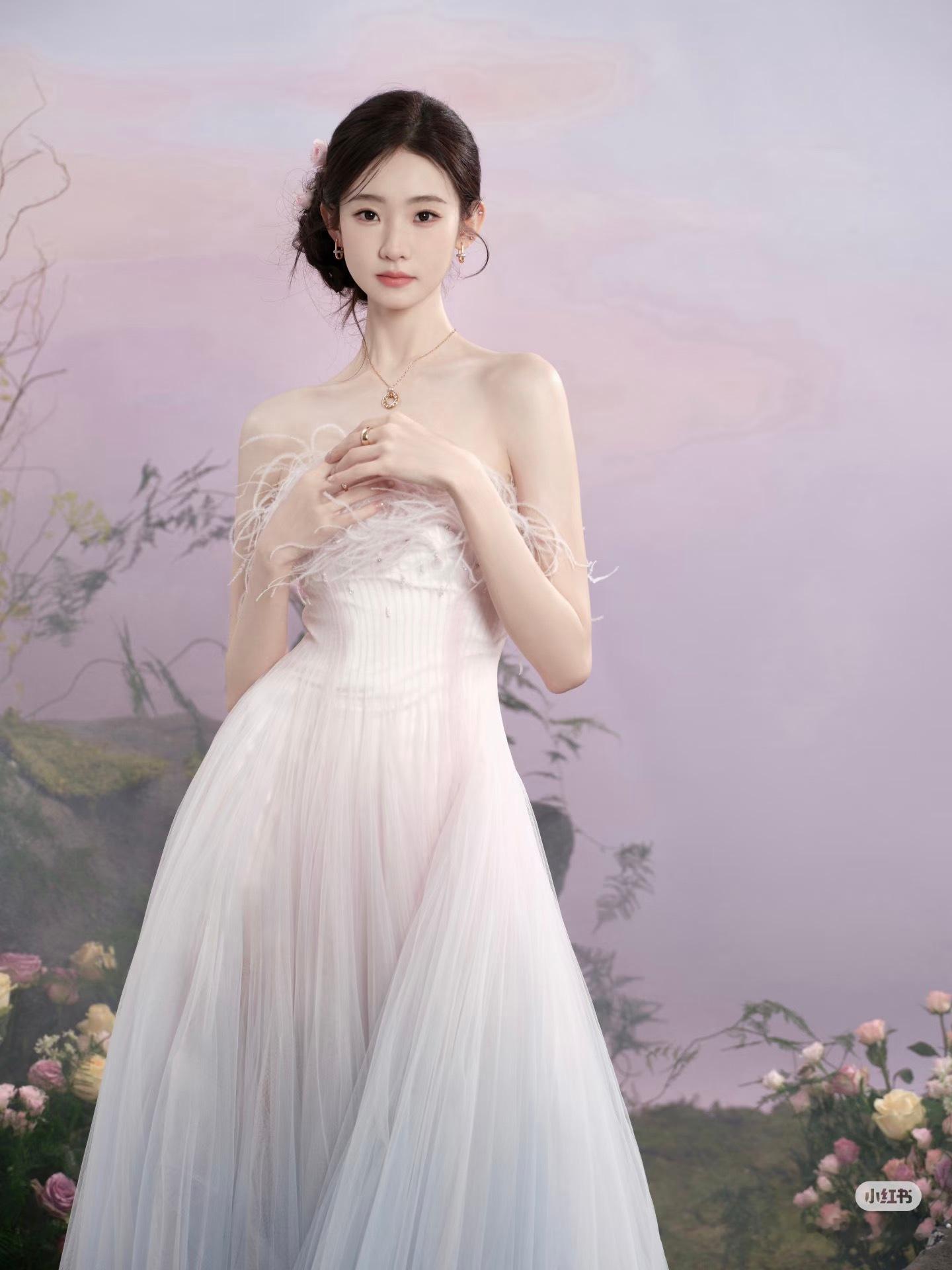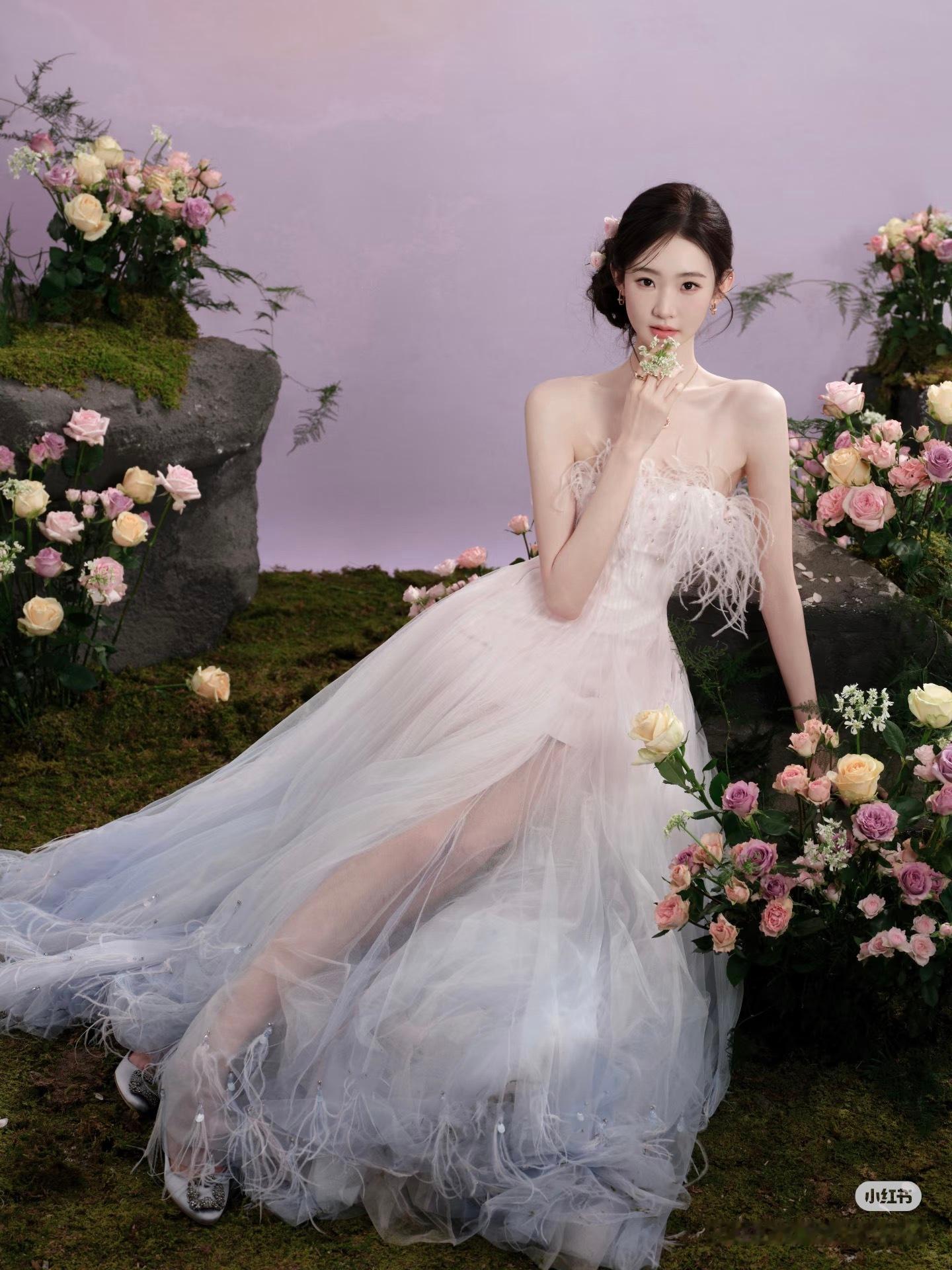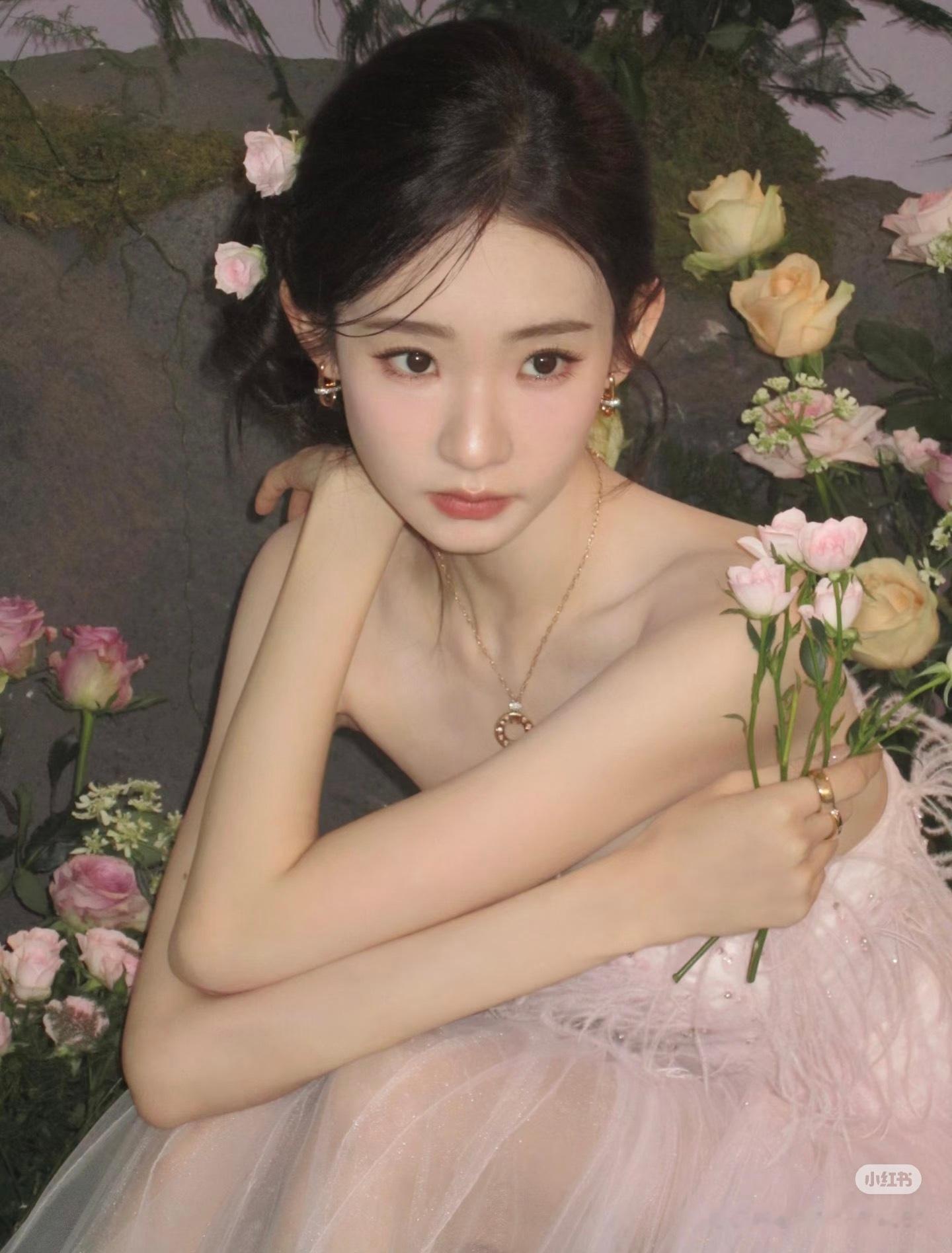 仙气十足!张艺凡身穿渐变抹胸纱裙,在繁花云雾中轻盈灵动,或捧花互动,或温婉凝视,