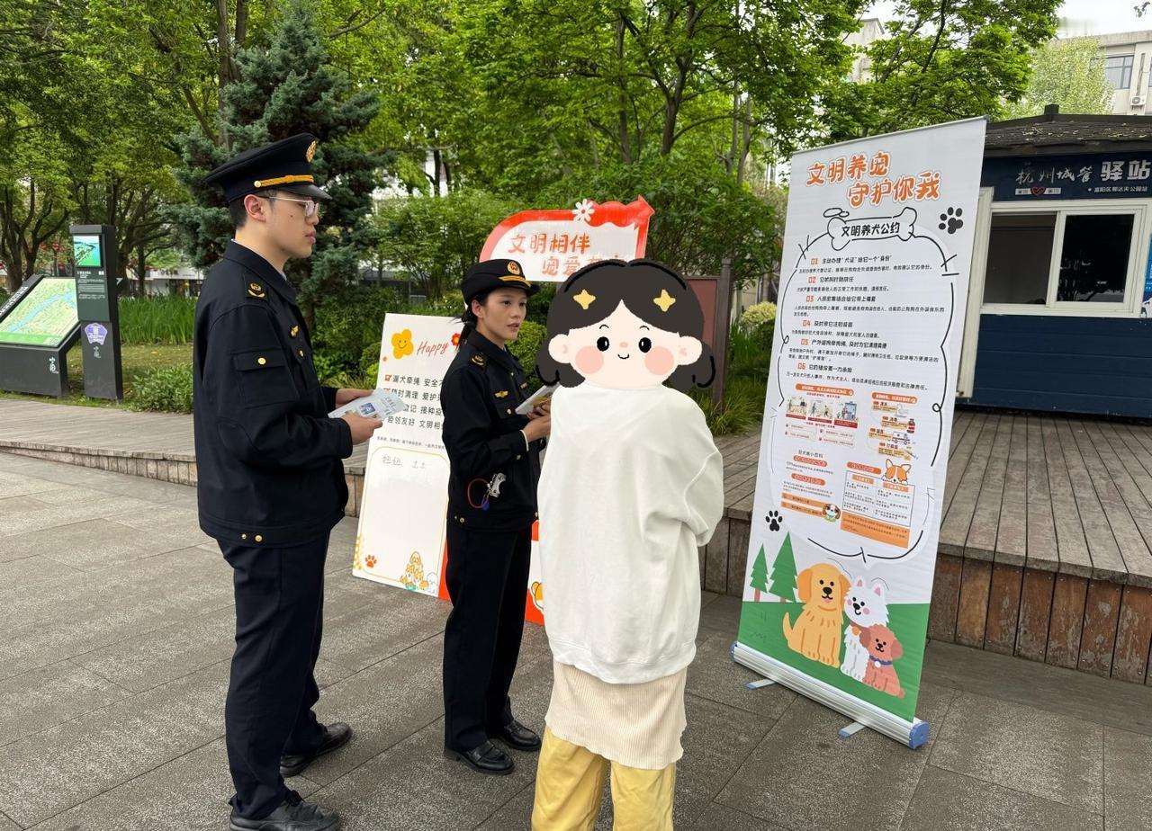 浙就很杭州文明养犬【牵紧“文明绳”,这波操作“犬”是爱】近日,富阳区综合行政执法局城东中队走进郁达夫公园,开展文明养犬宣传活动。现场设置承诺签字墙、萌宠拍照打卡点,市民纷纷驻足签名、合影留念。执法队员耐心讲解养犬管理规定,解答犬证办理疑问,还发放牵引绳、拾便袋等物品,吸引不少市民参与。大家在轻松氛围中凝聚文明共识,践行文明养犬理念。*Q