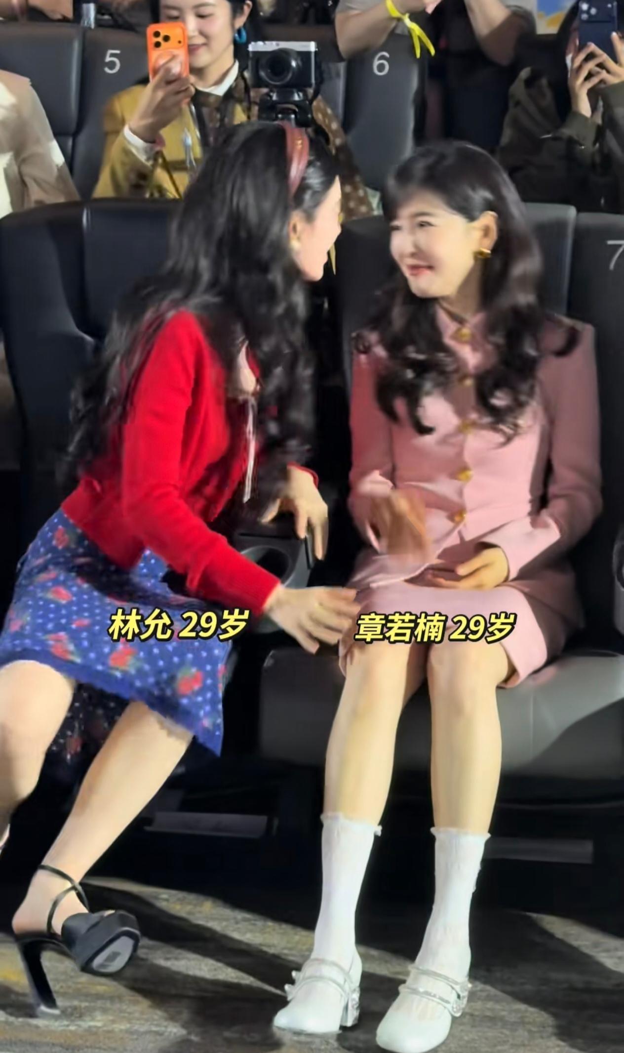 3月25日《冬去春来》追剧团的路透,被林允和章若楠甜晕了!她们俩都是96年的浙江姑娘,同框坐一起,29岁的状态太美了!