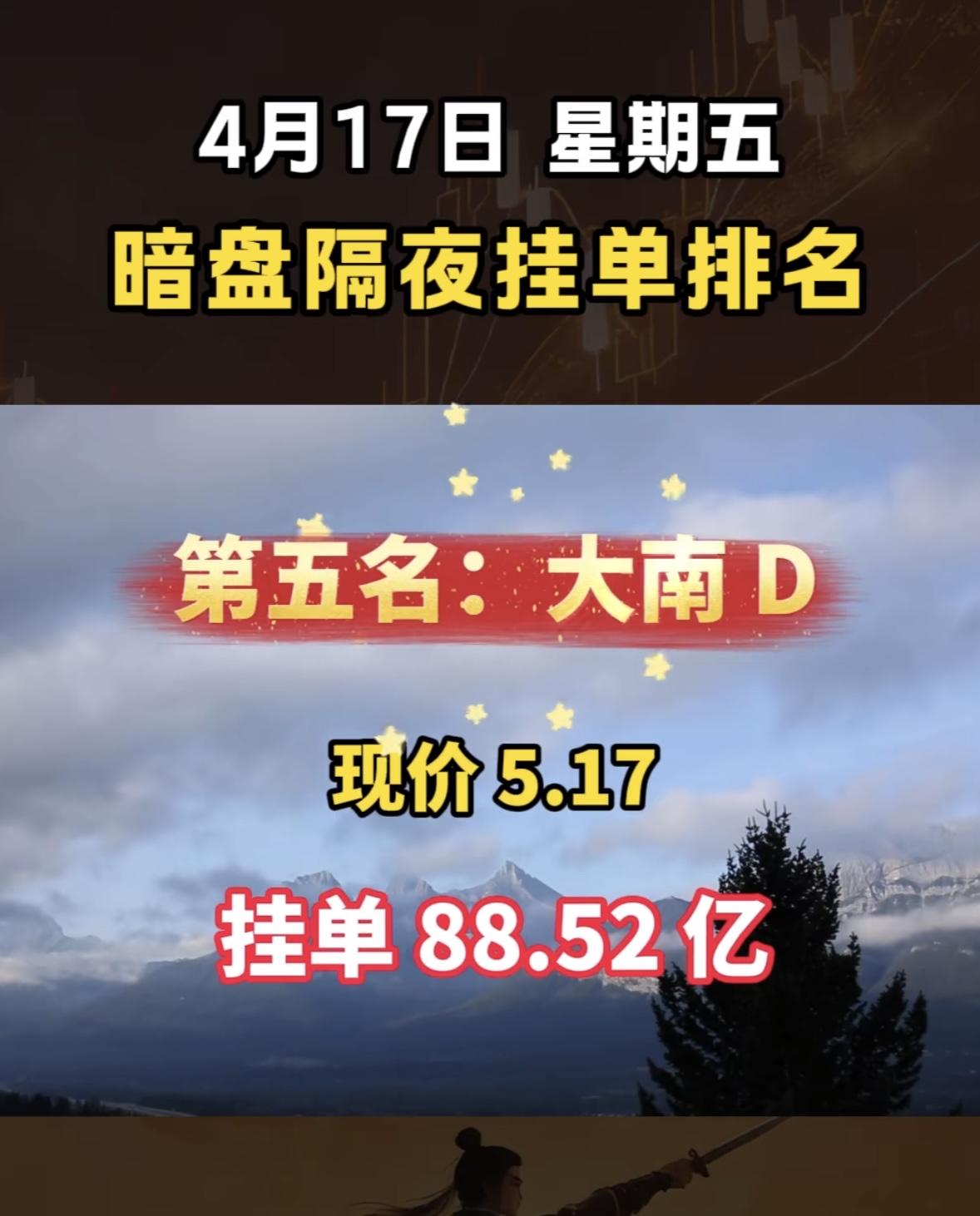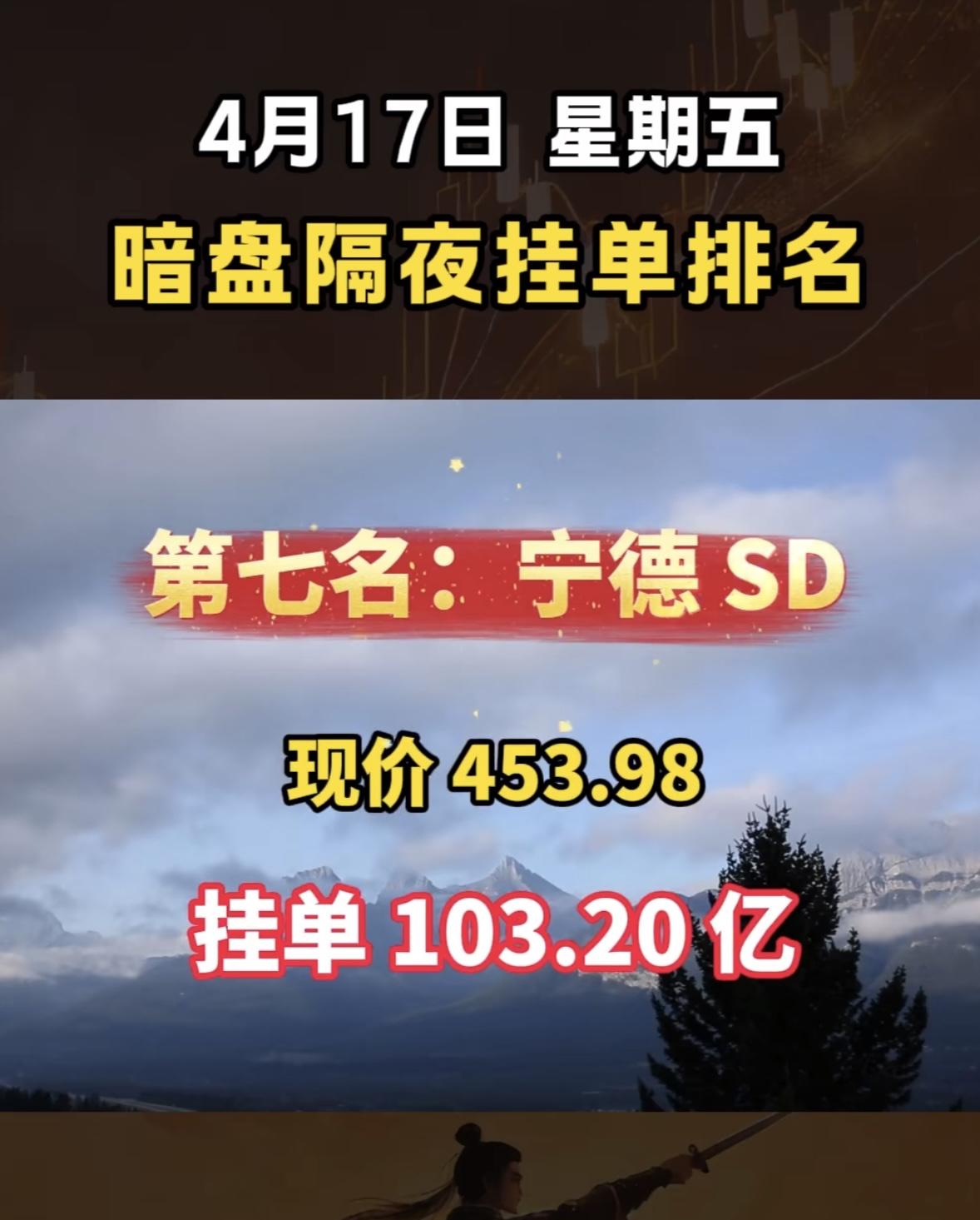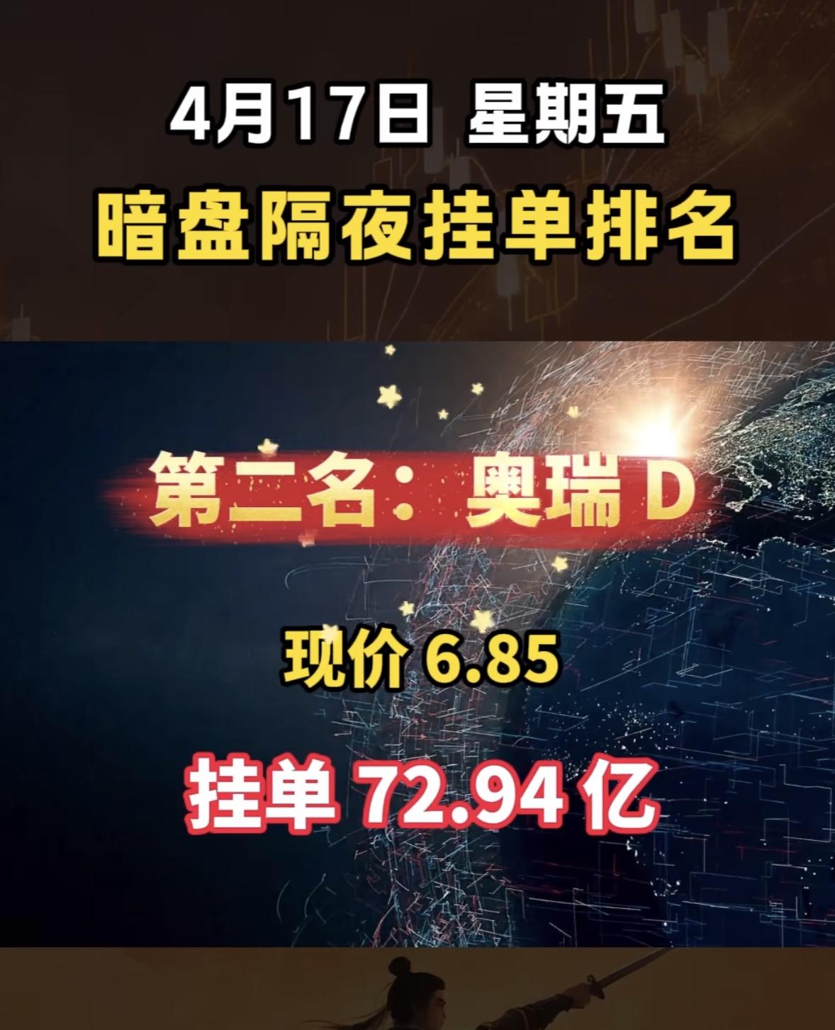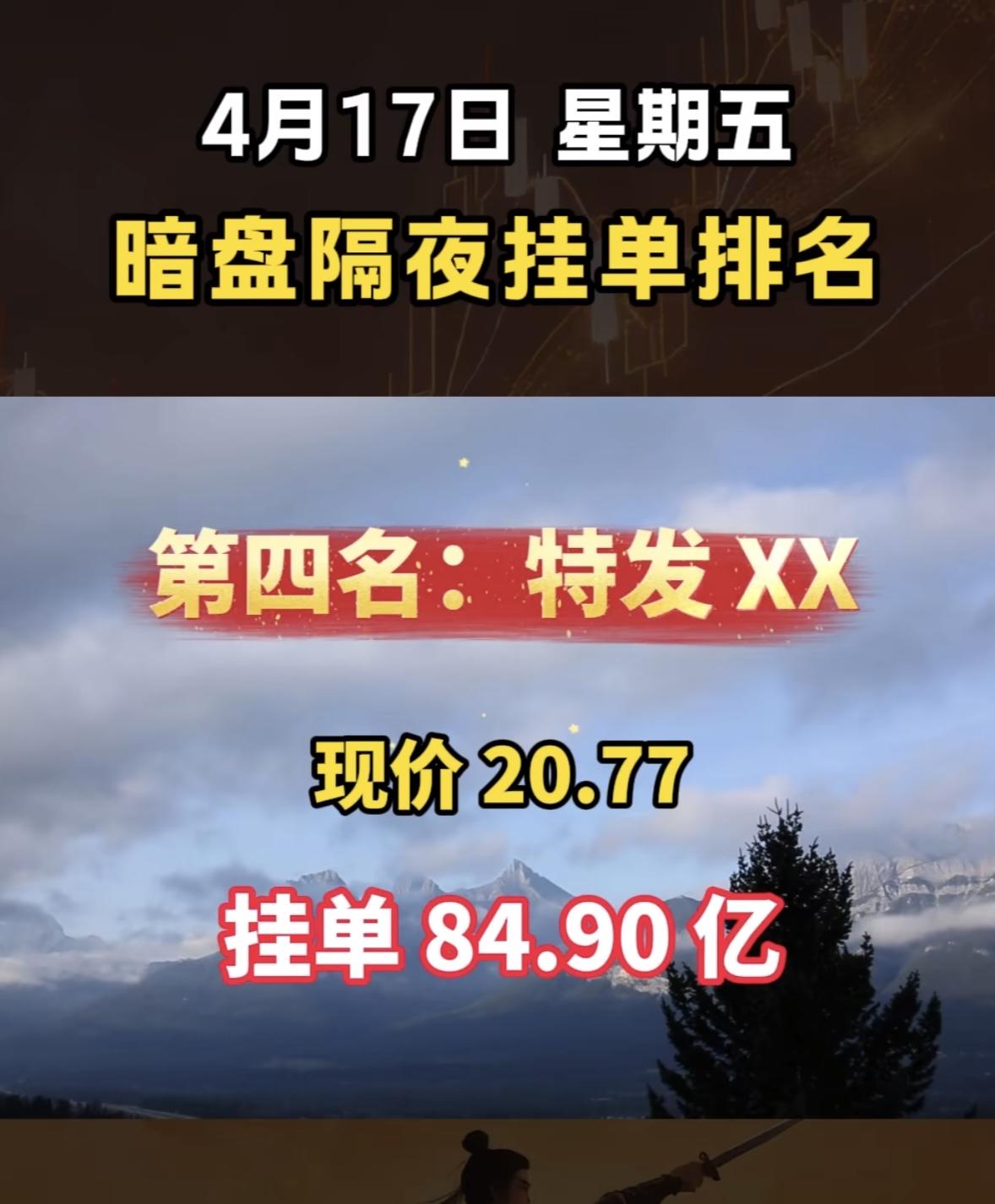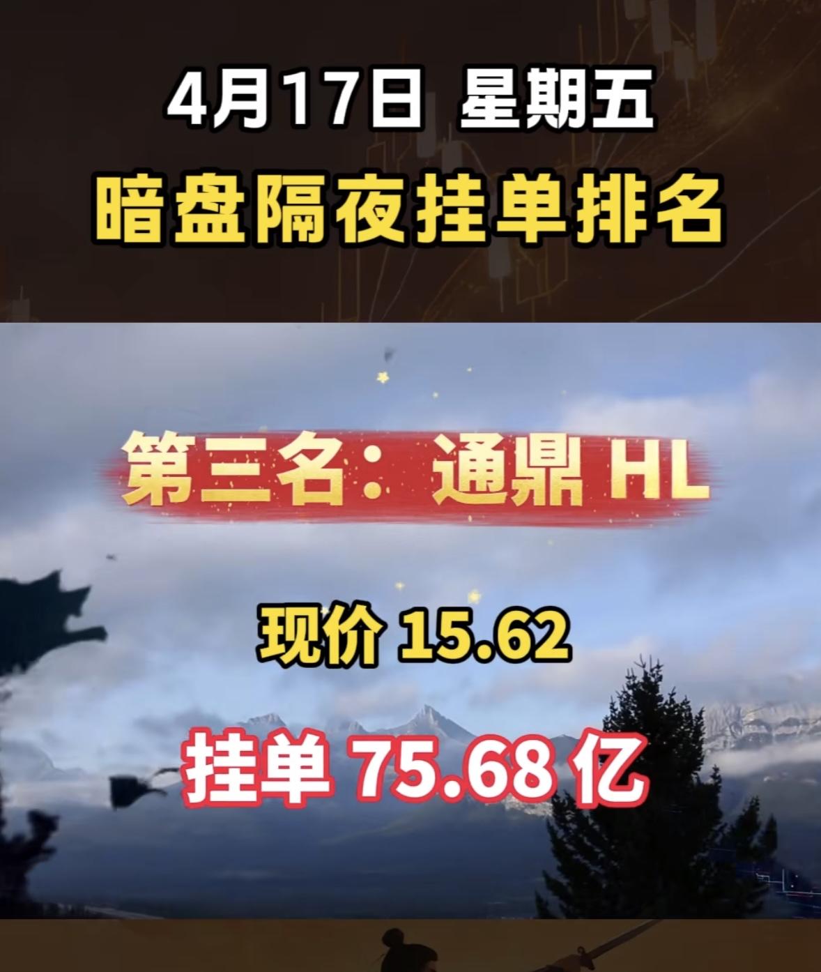 4月17日周四暗盘隔夜挂单排行榜出炉