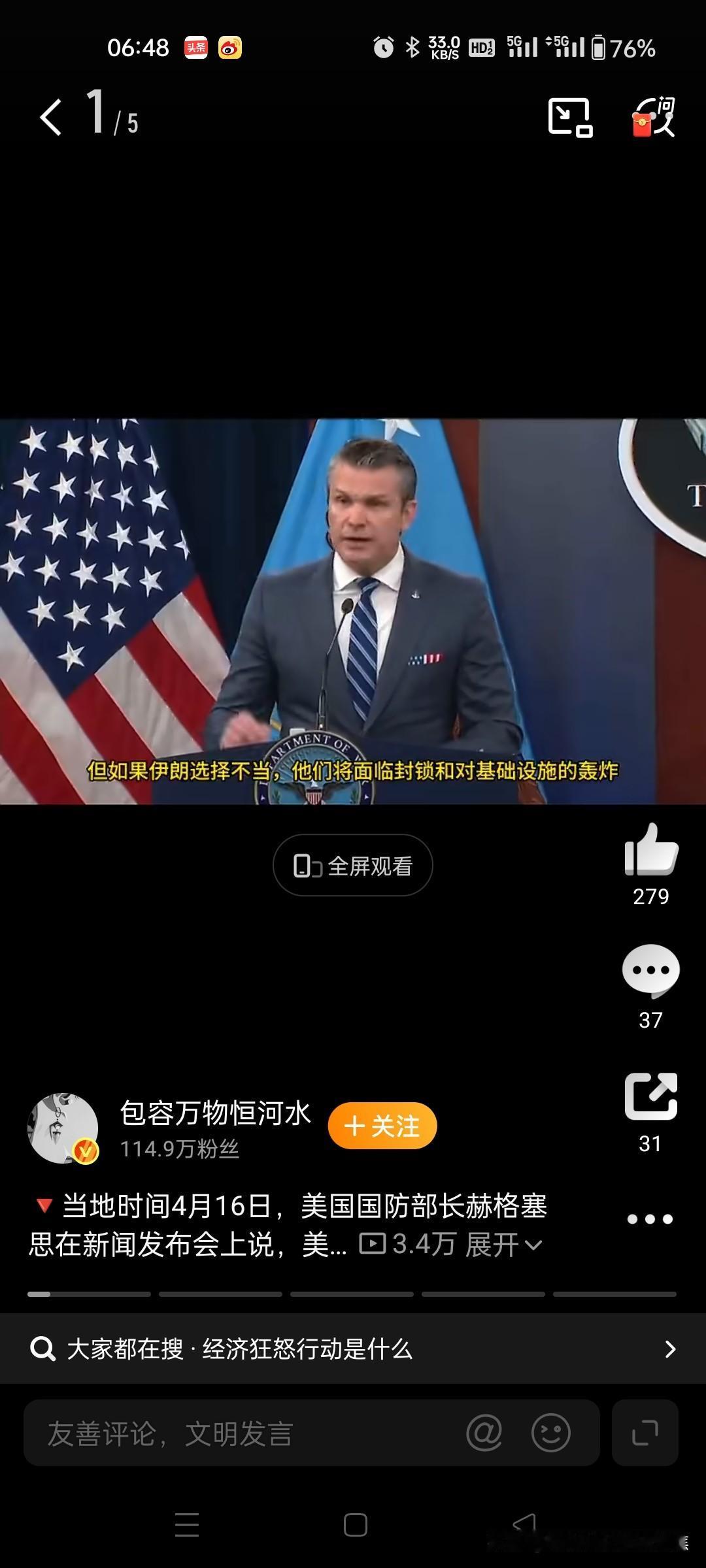 伊朗战况 美军合围伊朗 伊朗海峡危机 美国施压伊朗