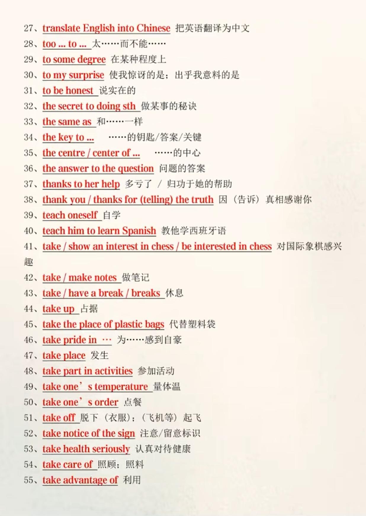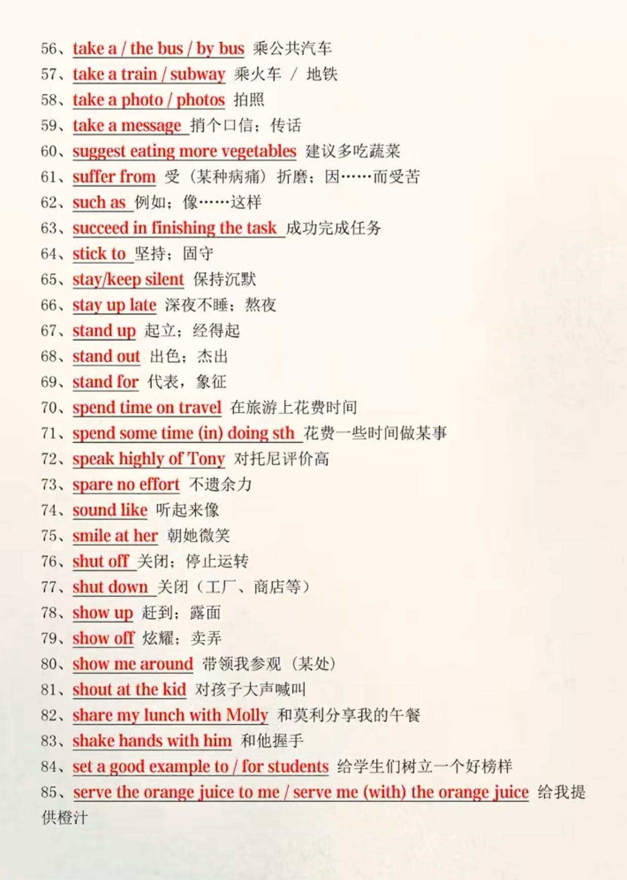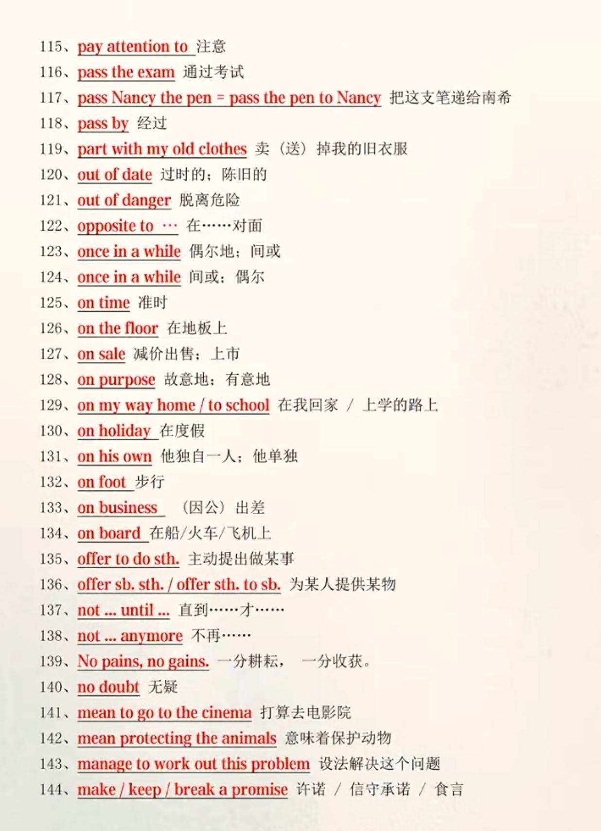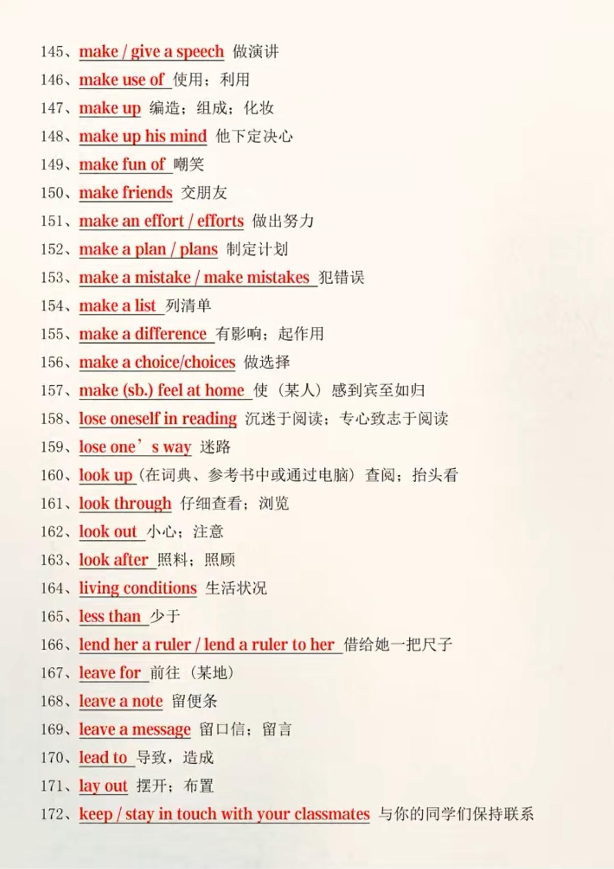 中考英语必背172个搭配