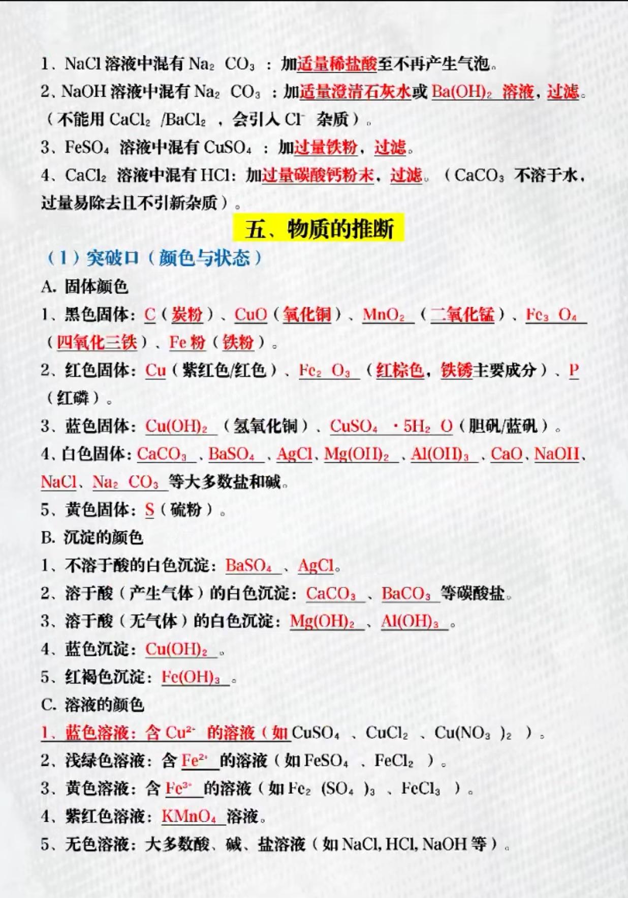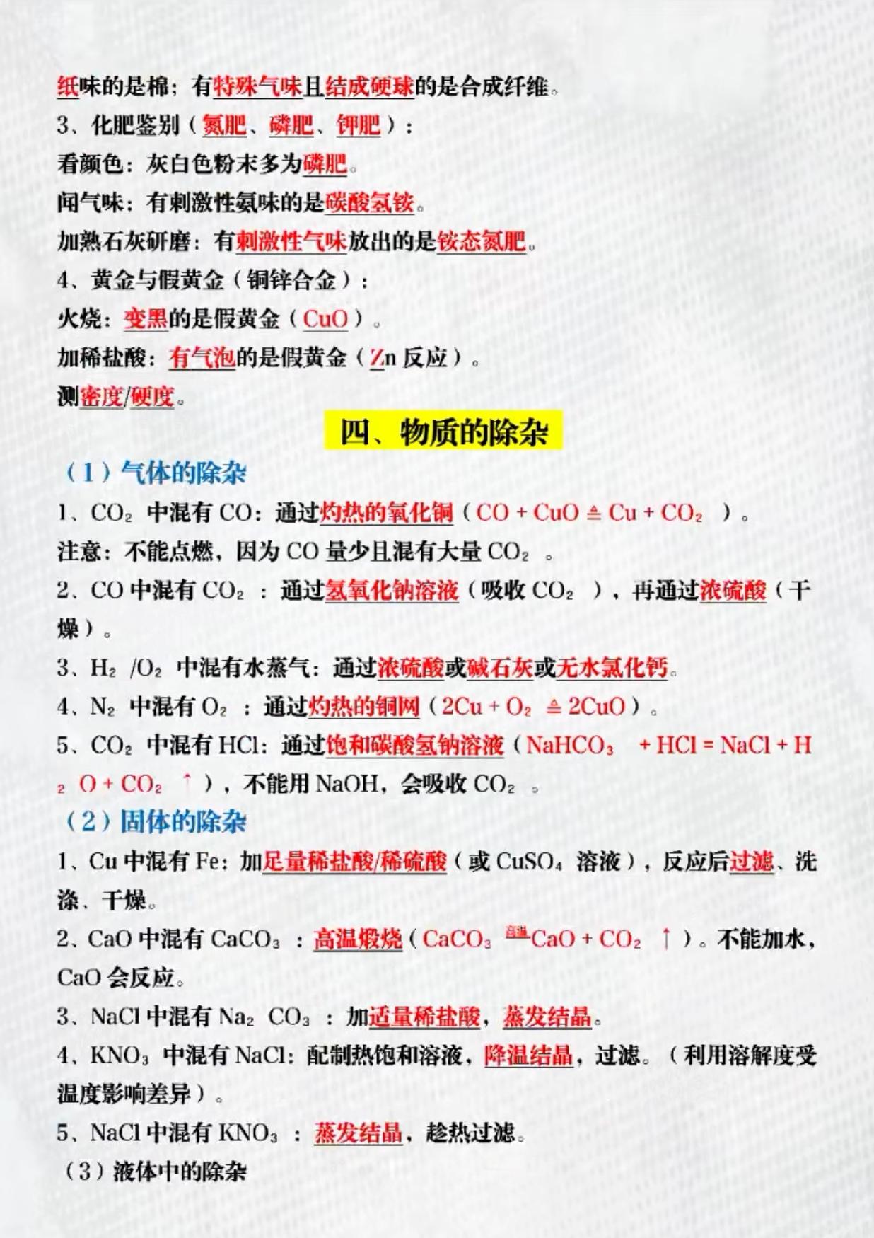 中考化学“提纯、检验、鉴别、除杂、推断”第一轮复习