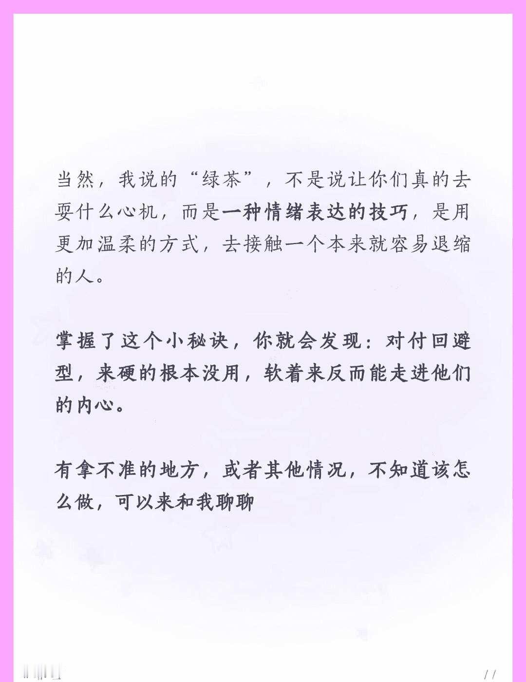 原来回避型吃“绿茶”的那一套 情感树洞 不懂就问有问必答 大大方方做自己 浪漫生