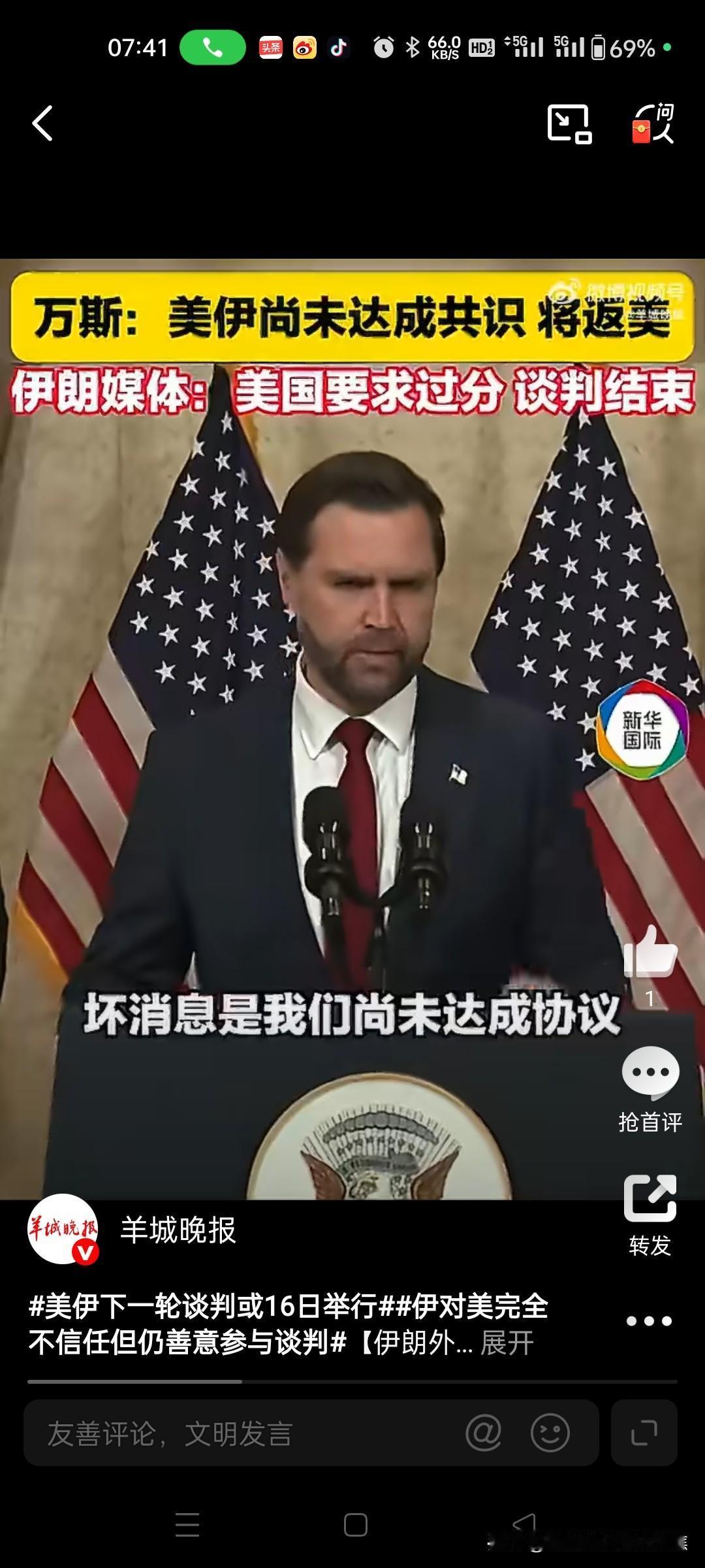 伊朗谈判基调强硬: