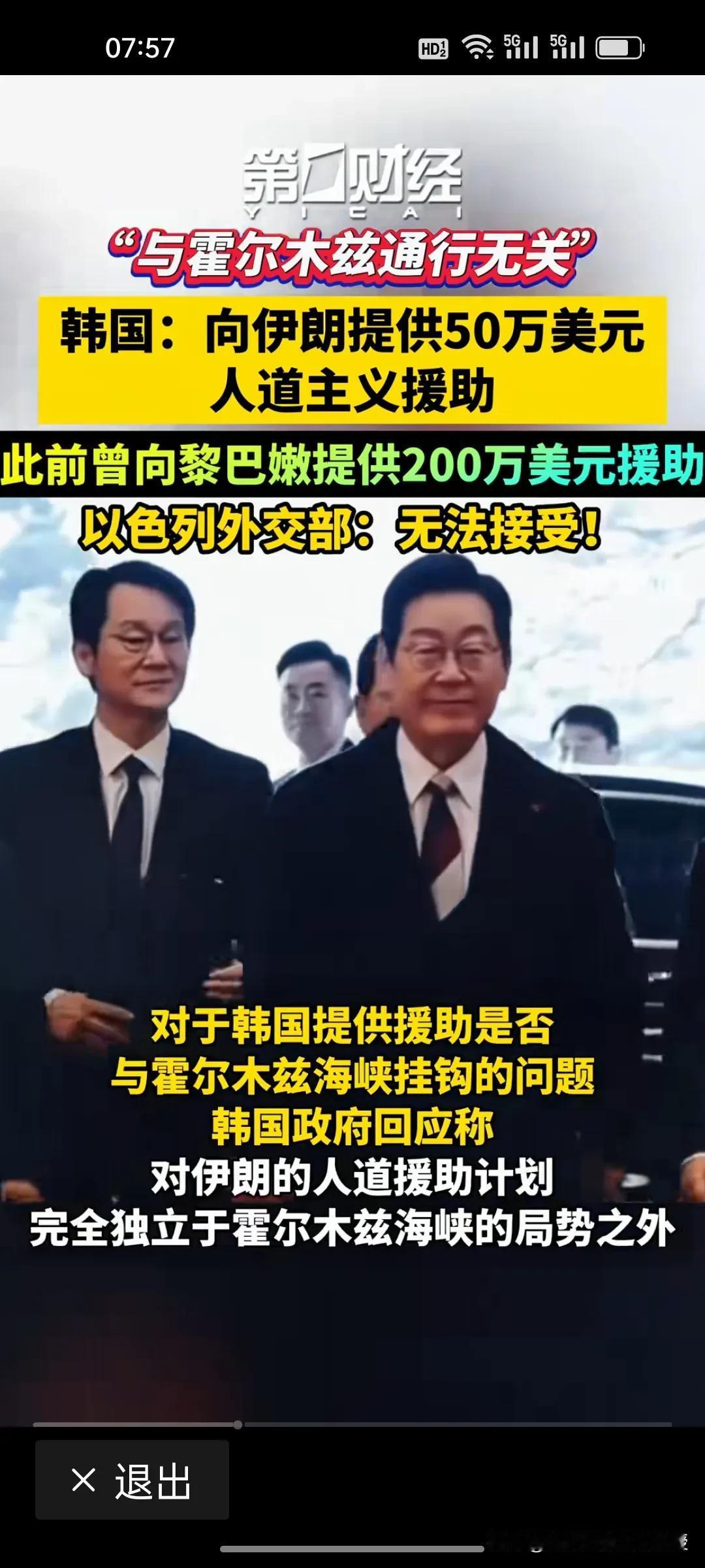 李在明任期内的韩国,画风突变,给人感觉更有人情味了!昨天,韩国顶着美以压力,向伊朗提供50万美元人道援助,此前还向黎巴嫩提供200万美元。韩国强调援助与霍尔木兹海峡通行无关,但谁都明白,26艘滞留海峡的韩国船只,才是背后真正的现实考量。