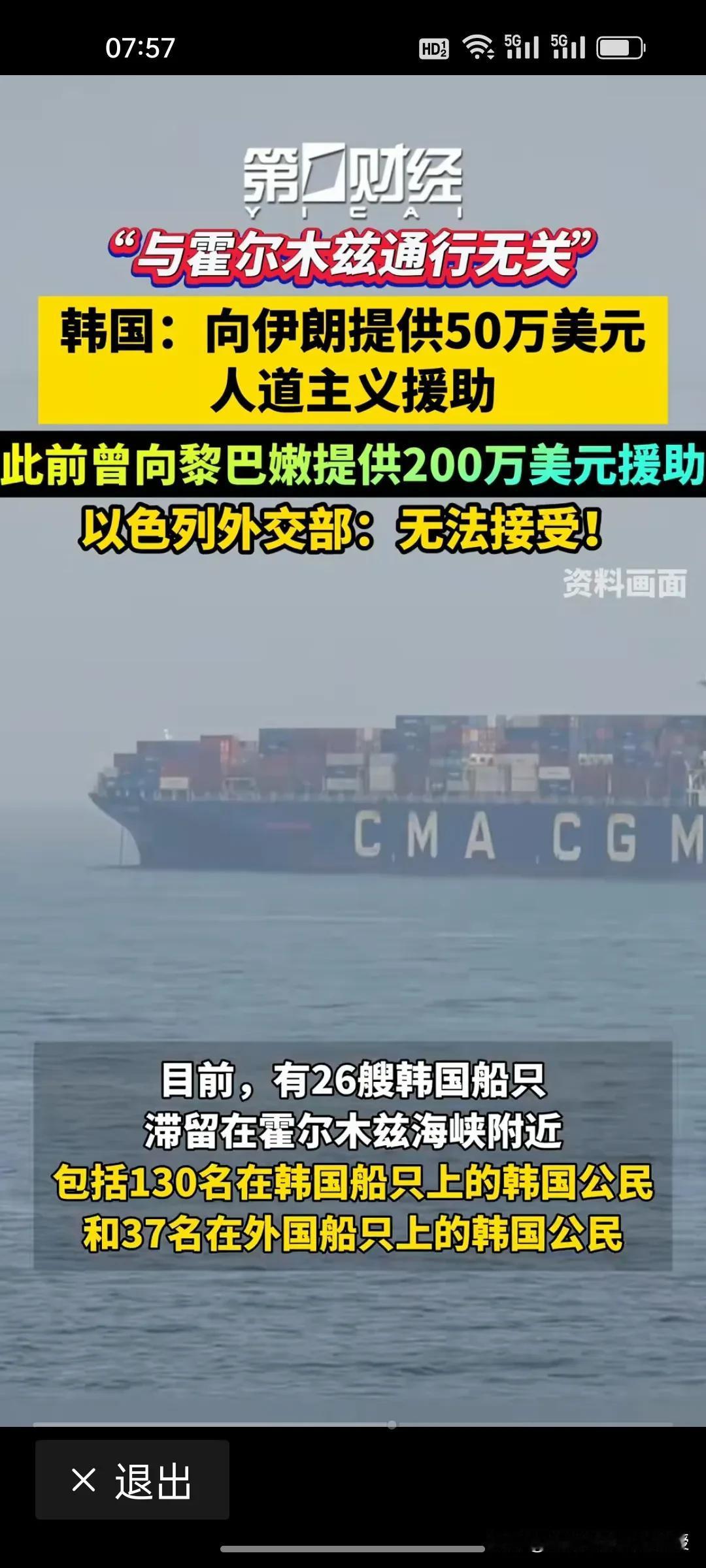 韩国突然向伊朗伸出援手,以色列直接炸锅:不可接受!