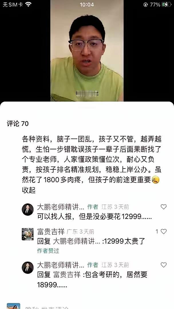 有人问起高报师一万二的服务费,他回了句:太贵了。