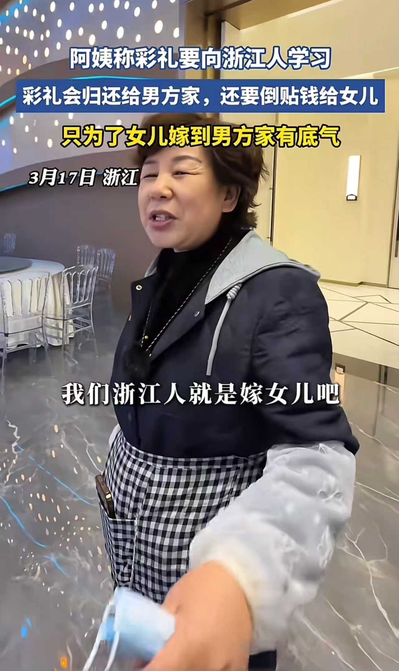 浙江又火了!浙江大妈一番话火遍全网:“要向我们浙江人学习,我们嫁女儿彩礼全带回,还要倒贴几十万!这才是嫁女儿的底气!”