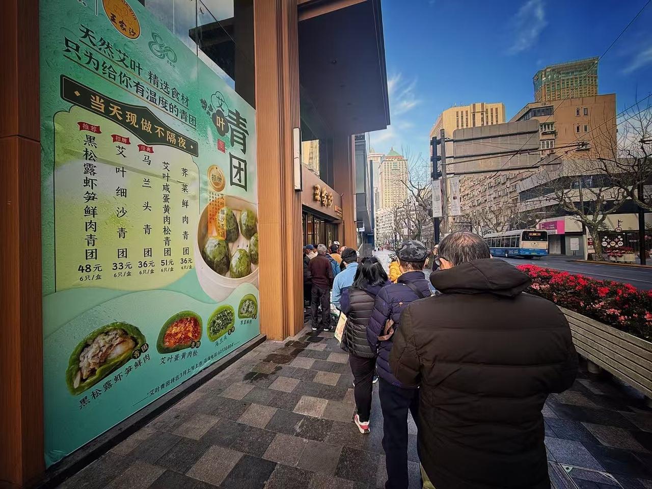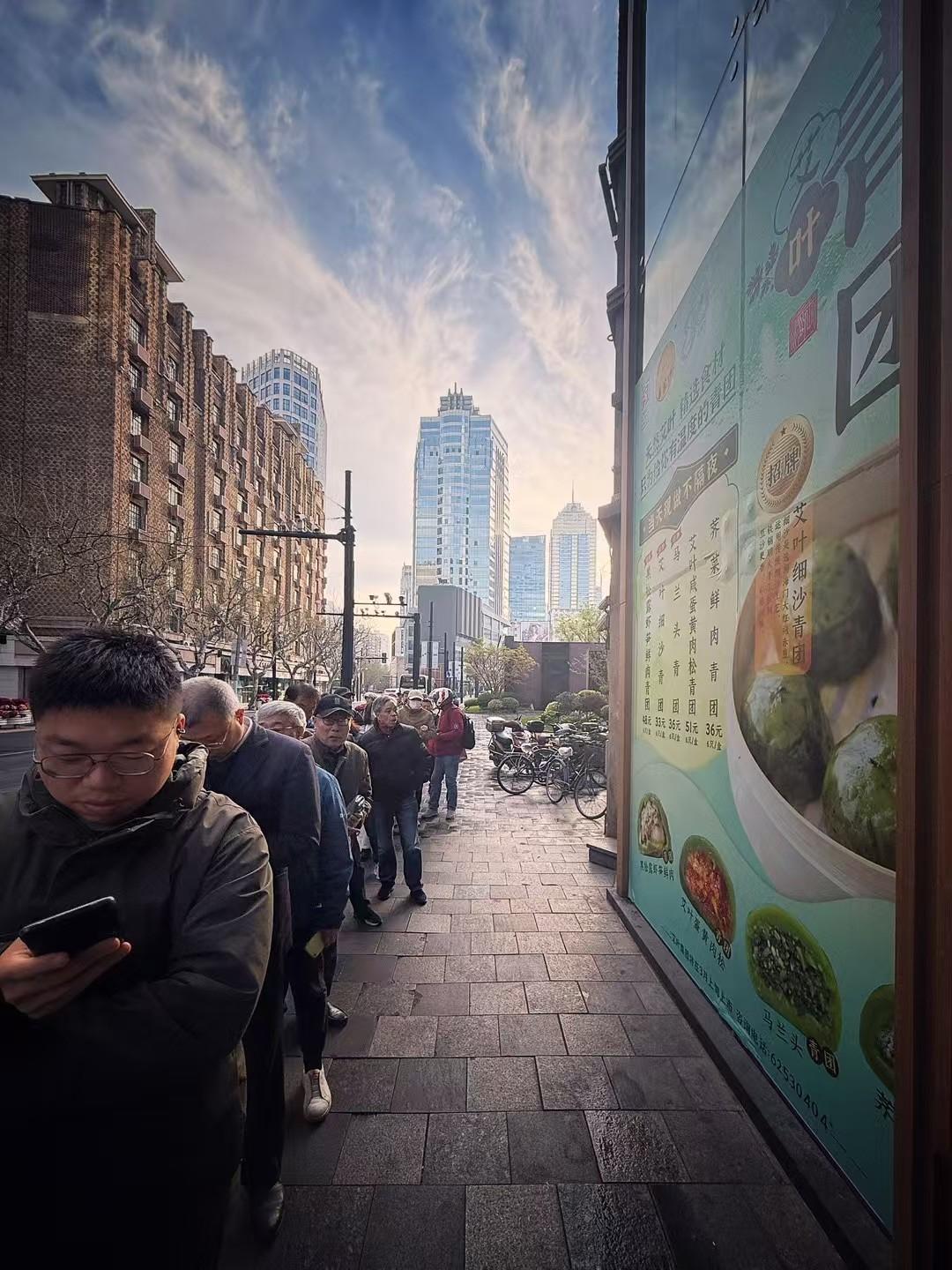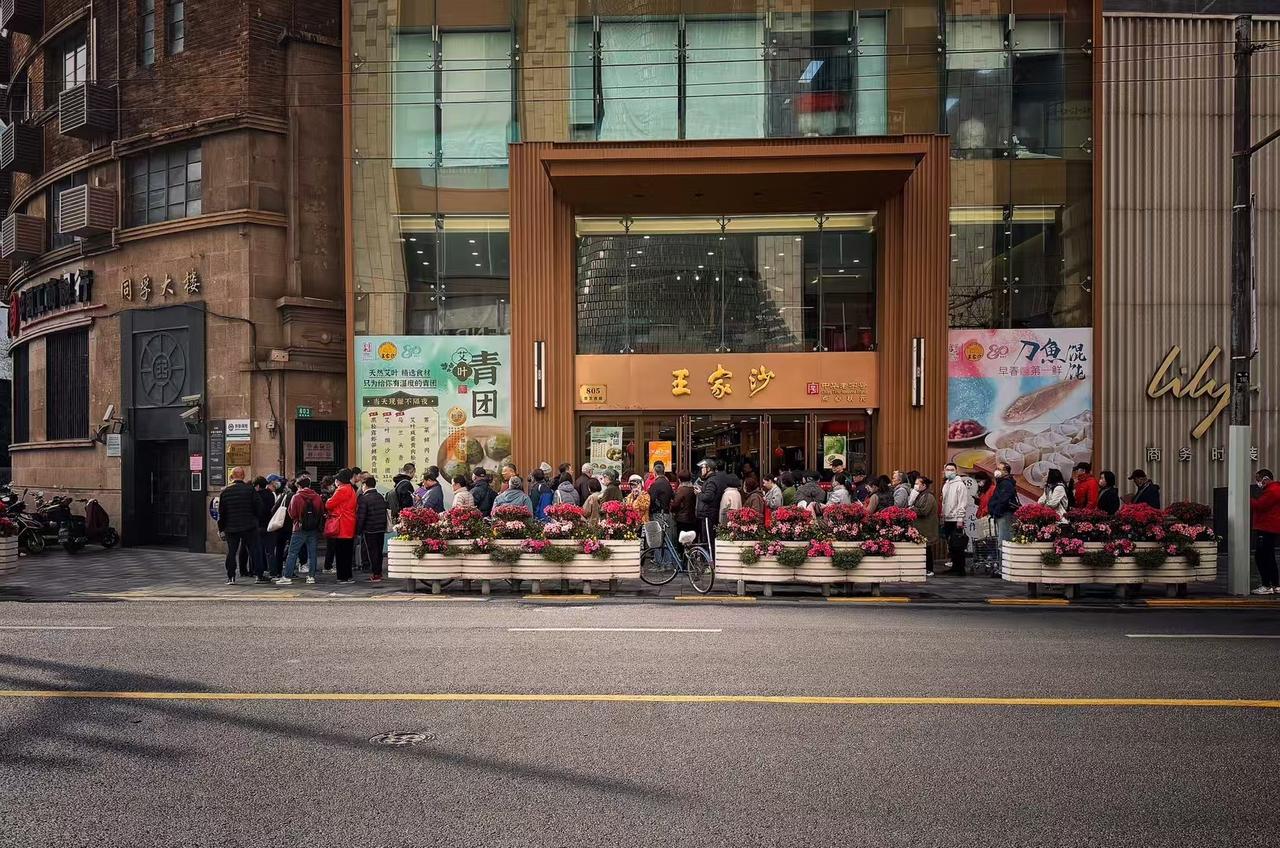 PS:图4-图9是我于2025年4月4日6点30分拍摄的王家沙总店排队盛况,听说白天这队伍可以排到石门一路呢,大家为了一期一会的青团也是蛮拼的哦。所以,与其等到临近清明节去凑热闹,不如现在先一尝为快!