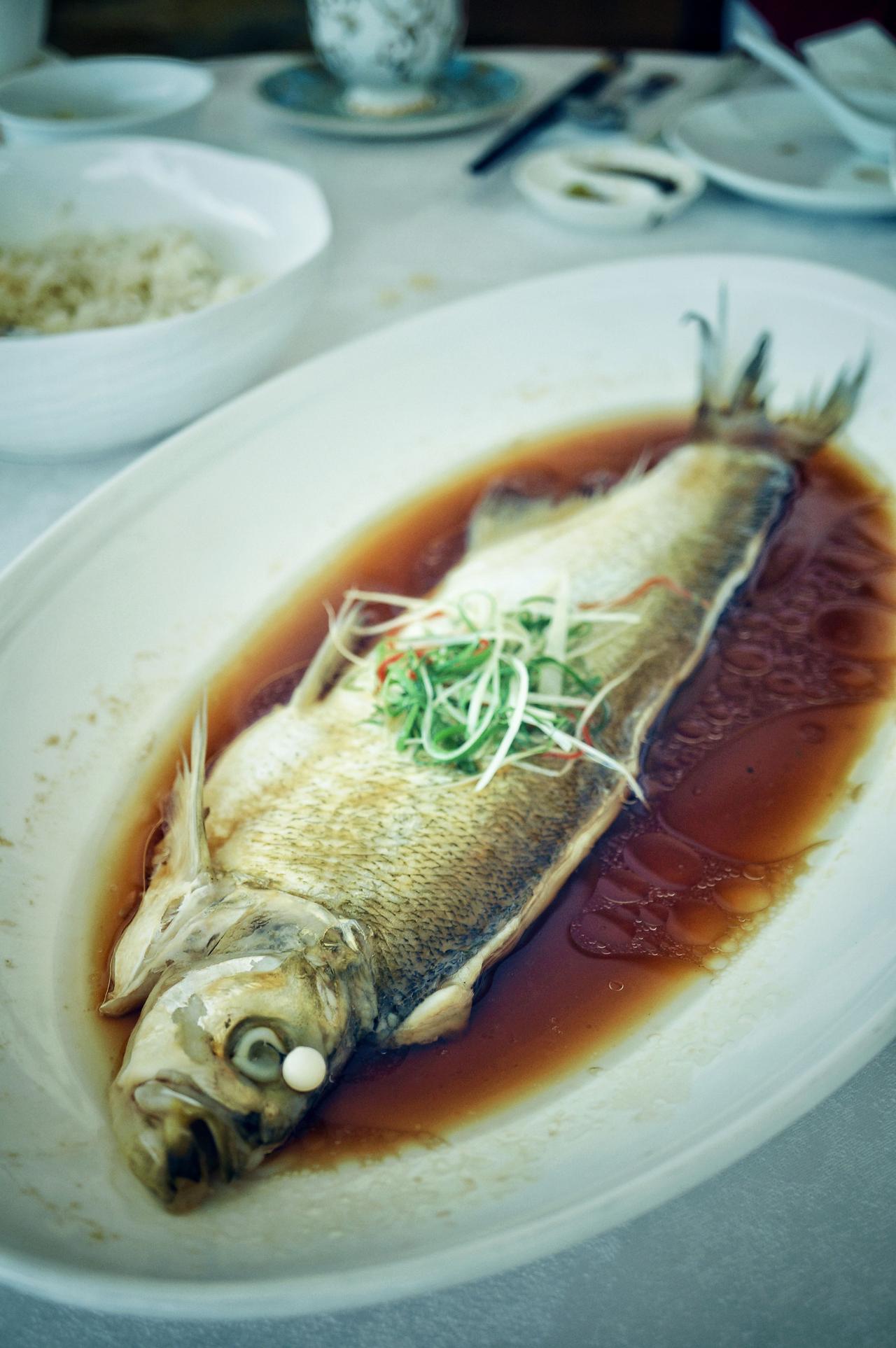 葱油鲜汁蒸白水鱼,葱油喷香,鱼肉鲜嫩,眼珠子弹出的新鲜,你们懂的~姨夫一个人几乎干完了一整条鱼,他说在如此美妙的氛围下吃饭,自然吃得多也吃得香!