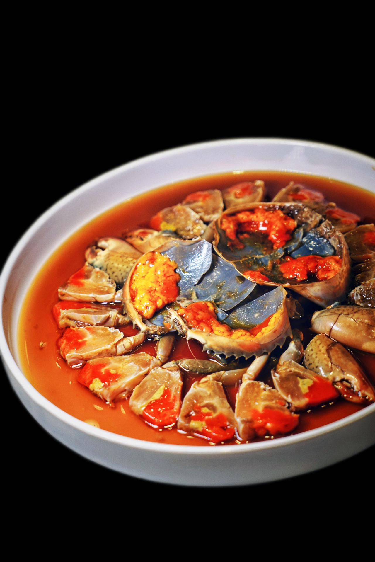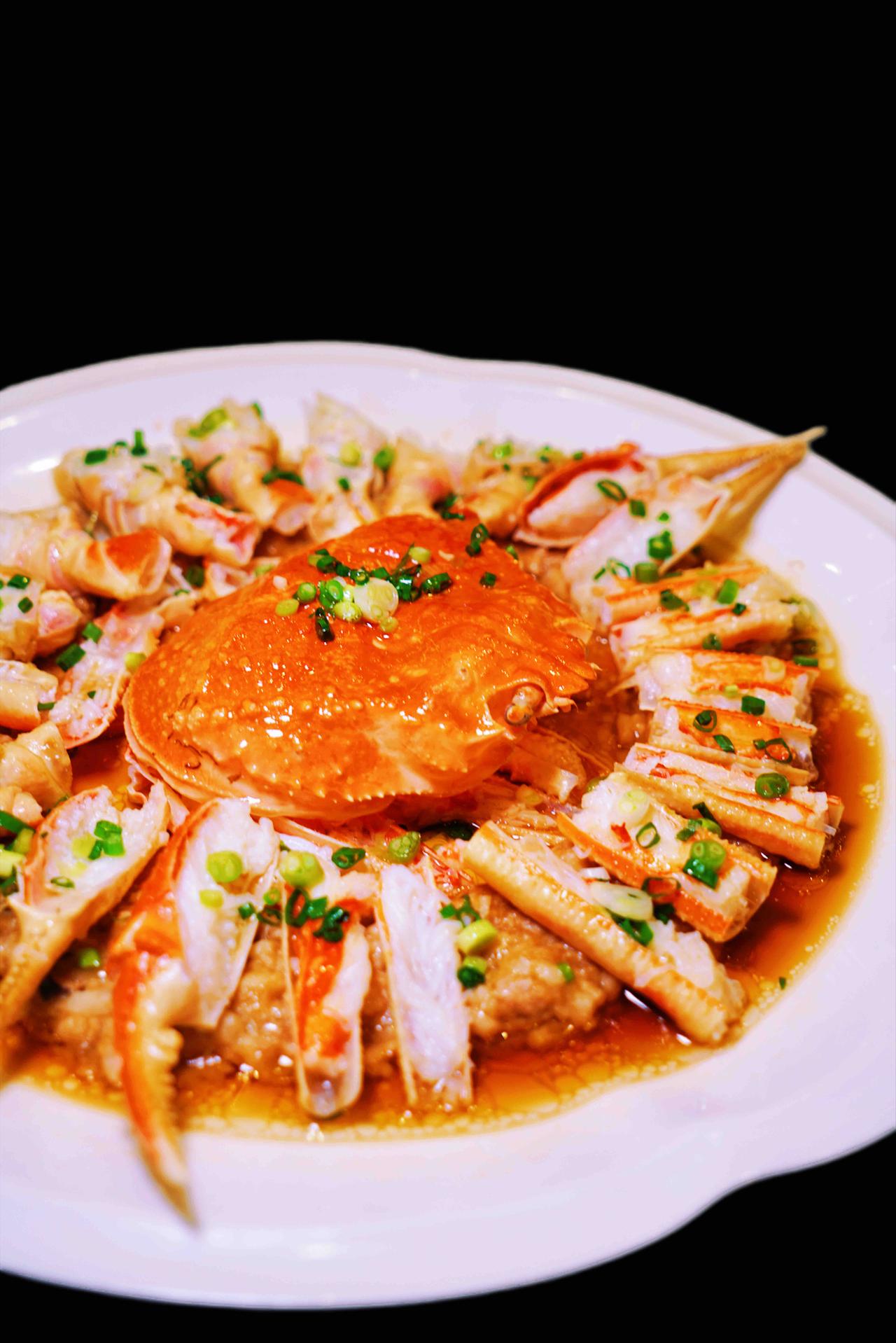 冷菜里的名酒醉膏蟹,红艳艳的过于诱人!入口绵密,像是在吃冰淇淋。脆皮咸草鸡,皮脆如纸,咸香入骨,吃了就有点停不下来。XO酱河虾豆瓣酥,XO酱的醇厚裹着河虾的鲜甜,豆瓣外酥内松,每一口都是酥香满足。