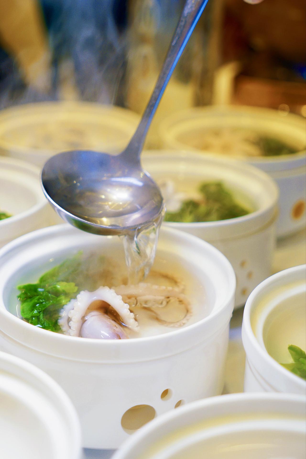 喝一口汤,鲜甜、清润、回甘、咸鲜,像把整个东海浓缩进了一碗水里。旁边的老饕朋友念叨了一句:“水对了,食材对了,盐都是多余的。”
