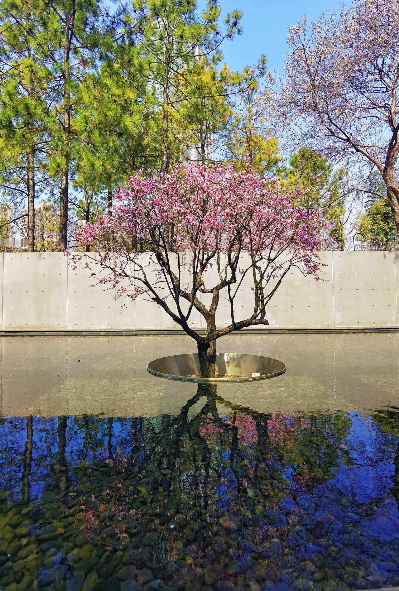 从二号线南京西路站2号口出来,步行约5分钟,就能看到石门二路128号的静安雕塑公园,从1号门进去,一眼望去便是人从众叕的樱花长廊。
