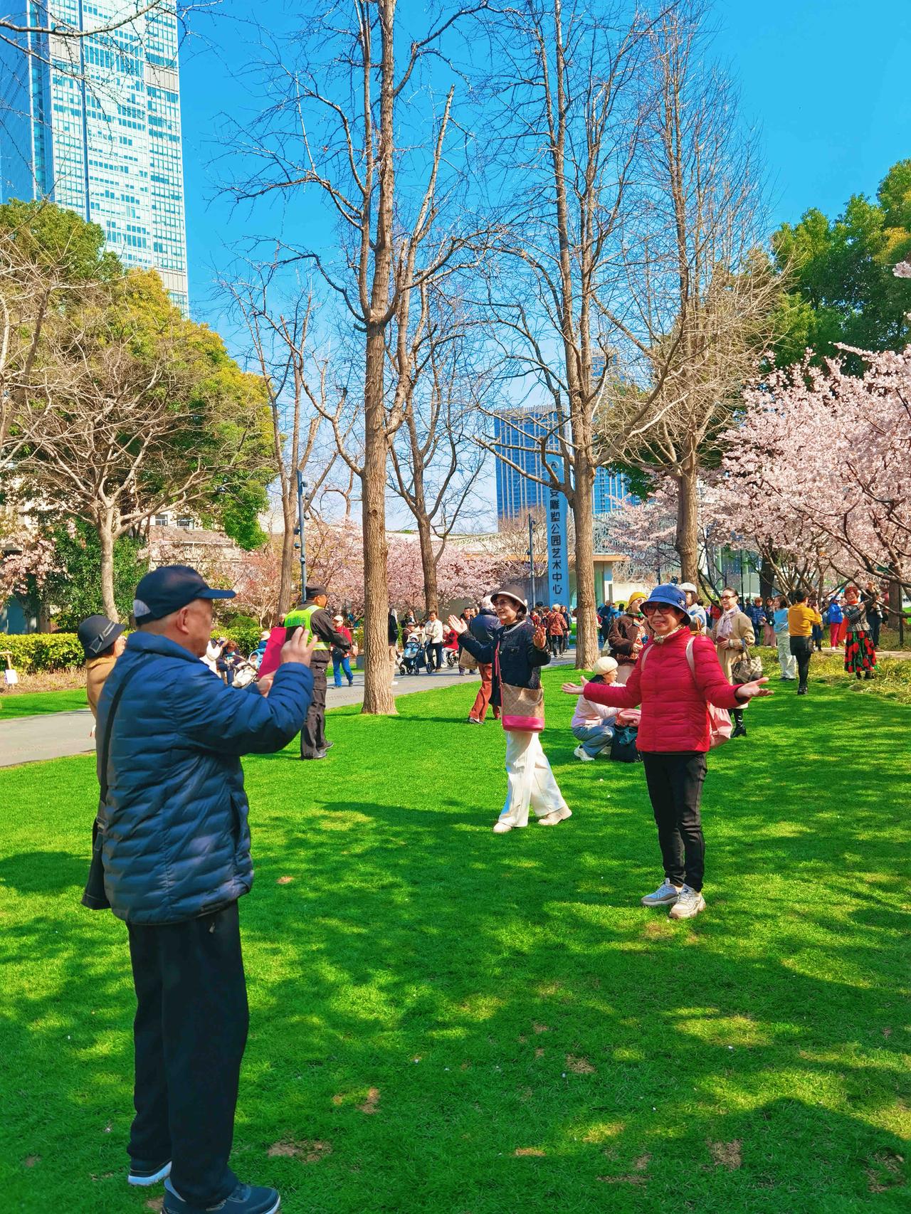 正当我们赏花时,迎面走来一群特别可爱的老人,他们在樱花树前集体合影留念,我也拍下了这温暖一幕。