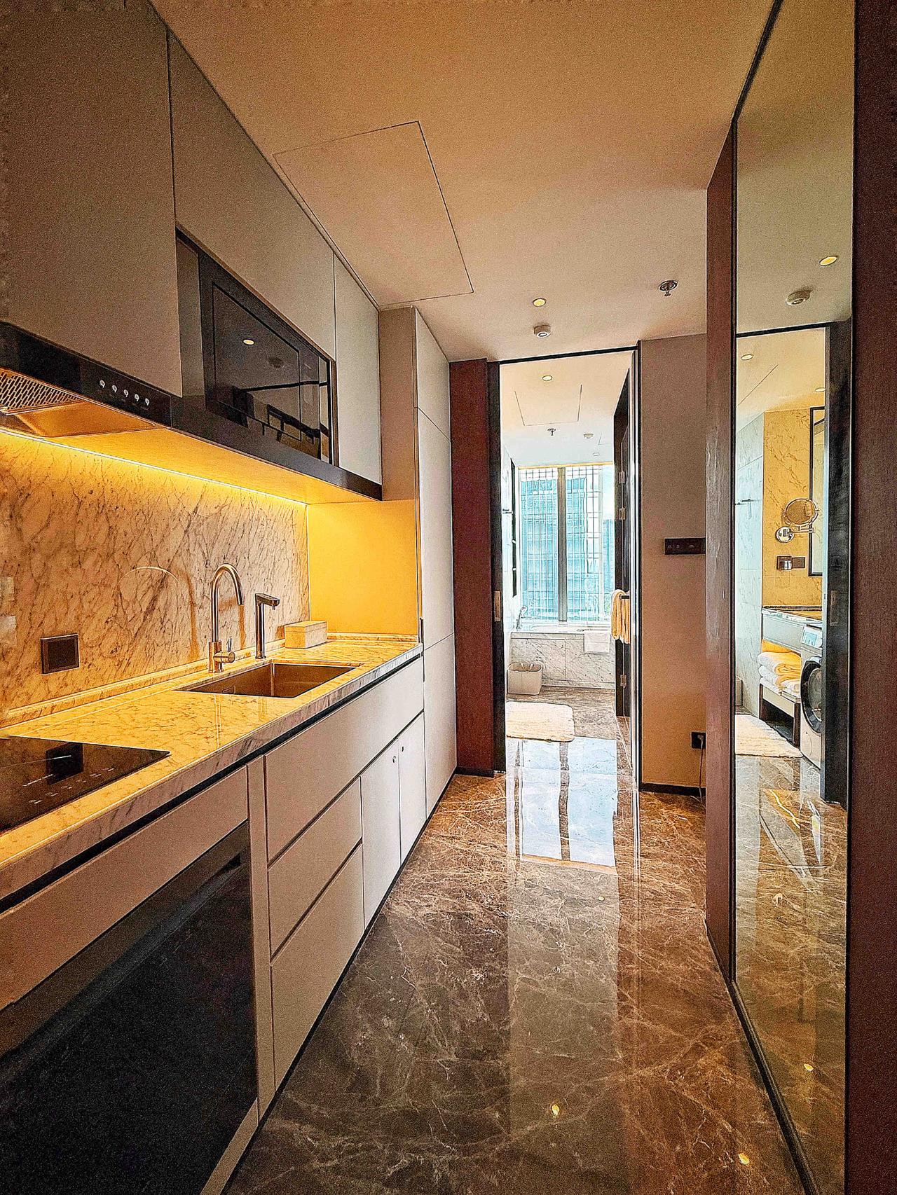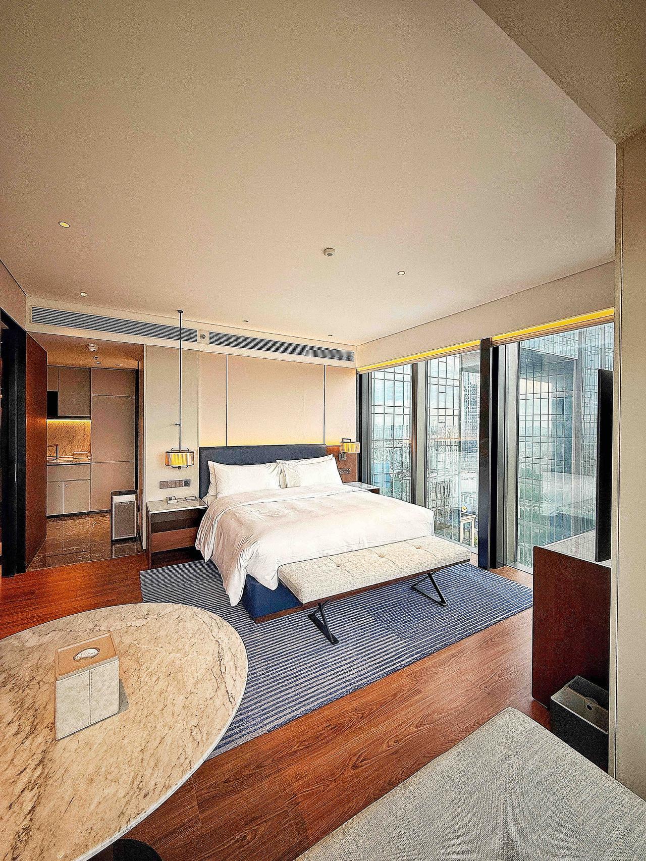推开20楼豪华开放式公寓的房门,我的第一反应是这不像酒店,像朋友帮我提前布置好的家,简洁却很雅致。