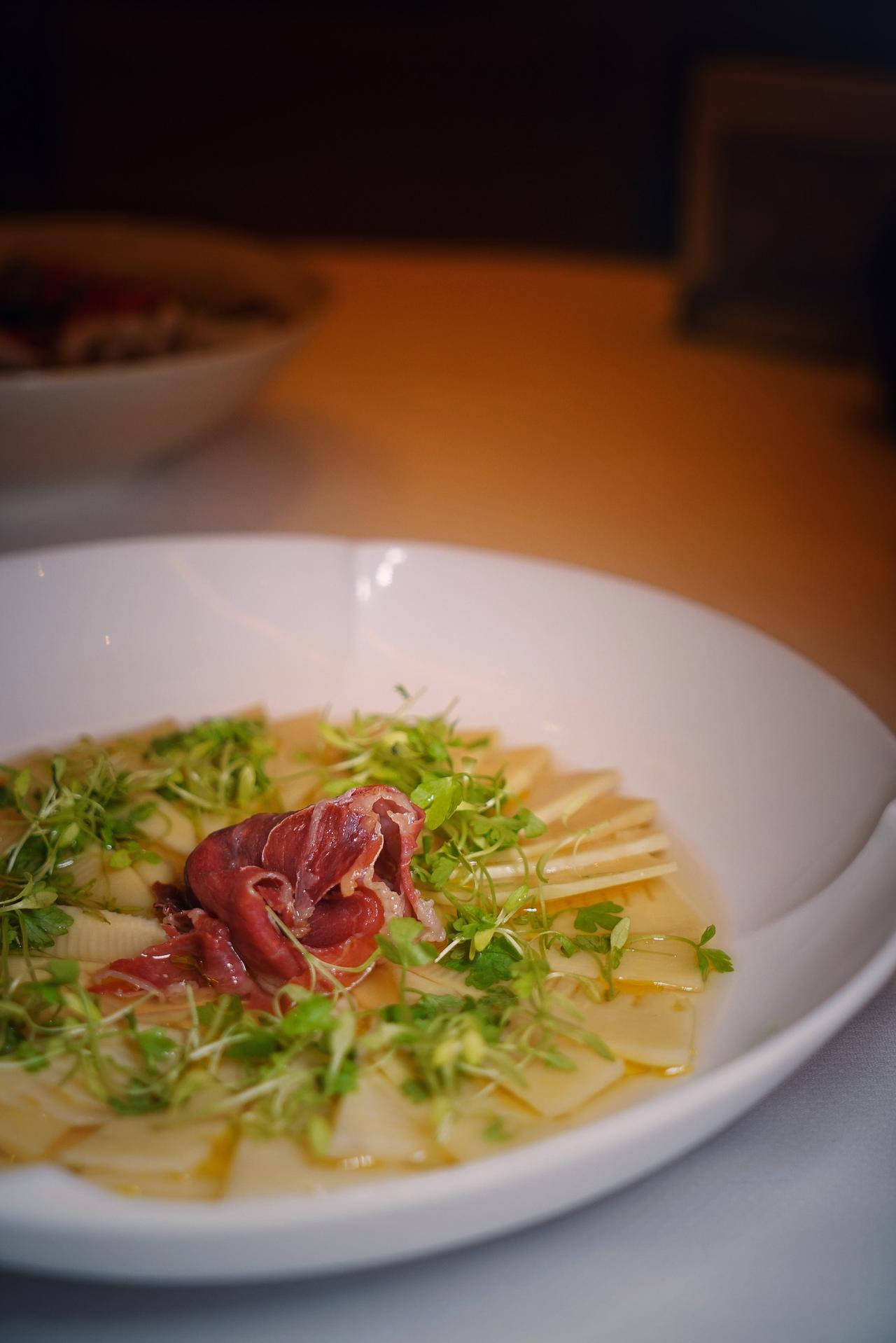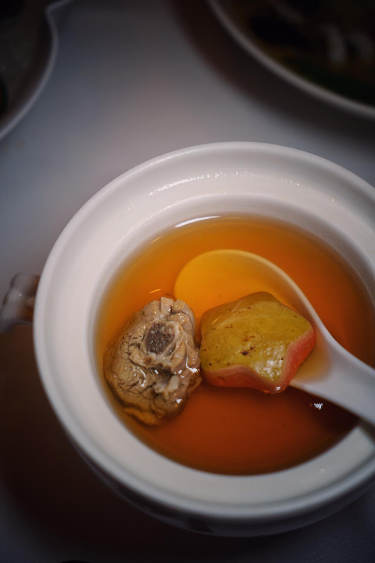 晚餐可以去同品牌旗下的中餐厅万丽轩吃个简餐,就在马路对面的尼盛万丽酒店二楼,非常便捷。春天该吃春菜,江南春醒双人餐就很不错,价格实惠、口味在线,肠胃负担也不会过重,我尤其喜欢番石榴水鸭汤和一煲春韭螺肉焗饭。