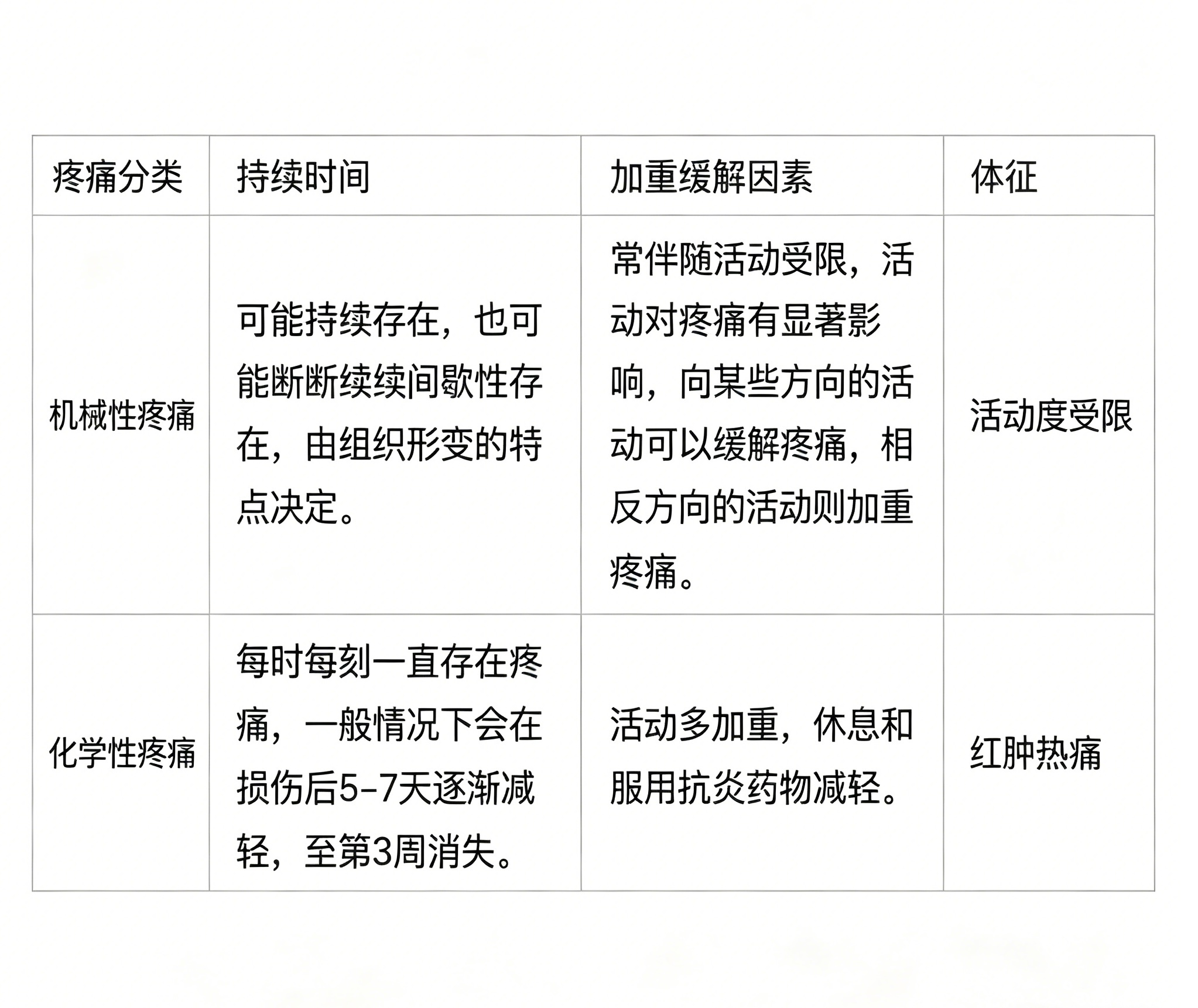 而对化学性疼痛(当组织受损或有炎症反应时,组织中的组织胺、缓激肽、5-羟色胺、乙酰胆碱、氢离子和钾离子等化学物质的浓度增高,超过化学性伤害感受器的阈值时,伤害感受器被激活,产生化学性疼痛)和早期的创伤性疼痛患者不适用。