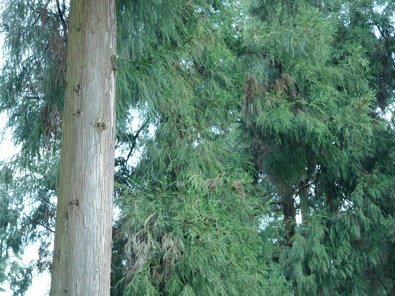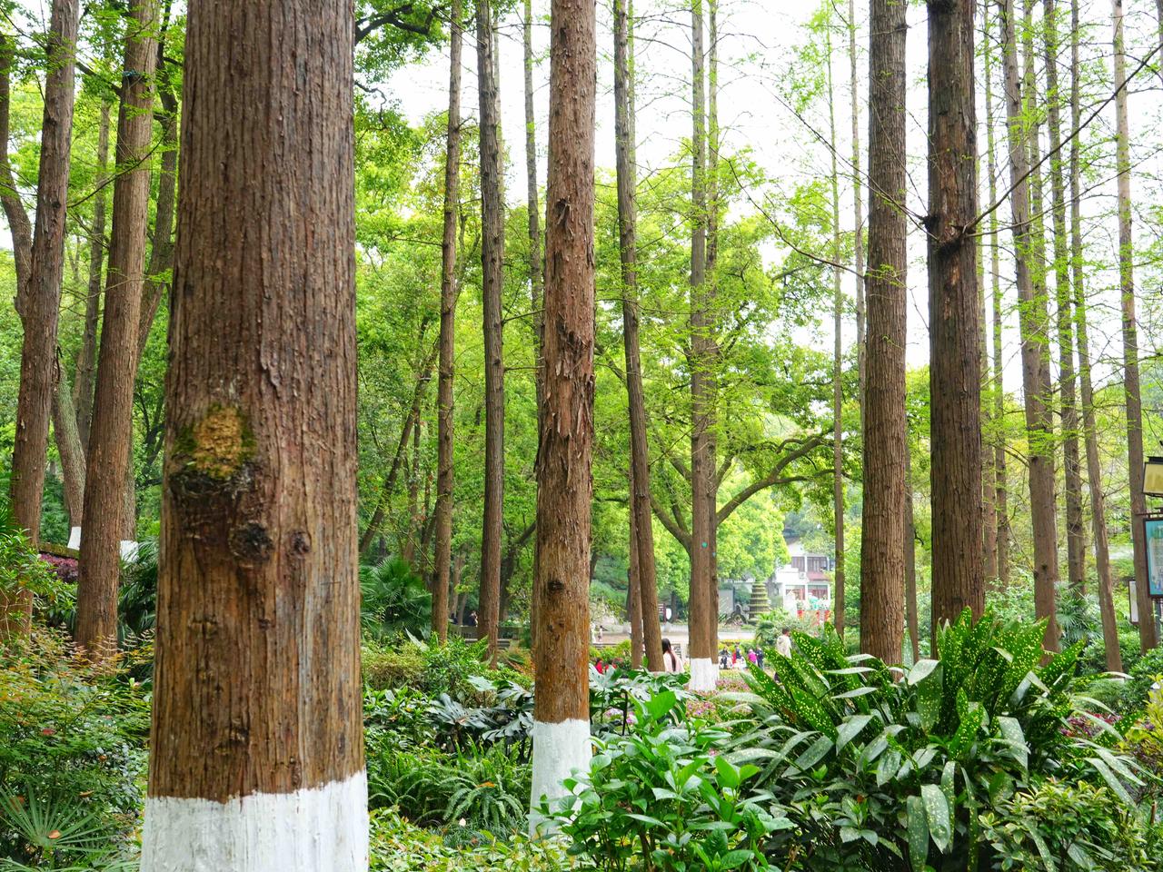 第三张是公园的杉树林,一排排的树干直直地往上冲,下半截刷着白灰,整整齐齐的。站在树下抬头看,枝叶把阳光筛成星星点点的光斑,走一圈连呼吸都觉得清爽。这些树栽在这里几十年了,夏天给人遮阴凉,冬天落了叶也给公园添点风景,就这么安安稳稳地守着这片地方。