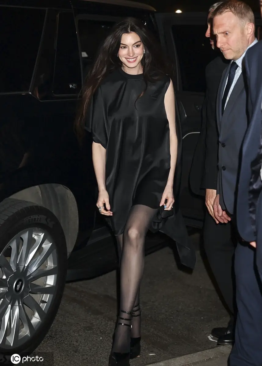 安妮·海瑟薇亮相《圣母玛利亚》庆功宴 一袭黑色迷你裙惊艳全场