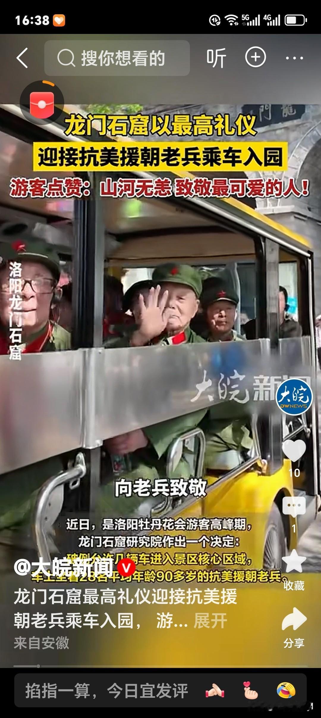 近日,河南洛阳龙门石窟景区来了28位志愿军老战士,没想到违反景区规定,游客们还都说景区做得好。