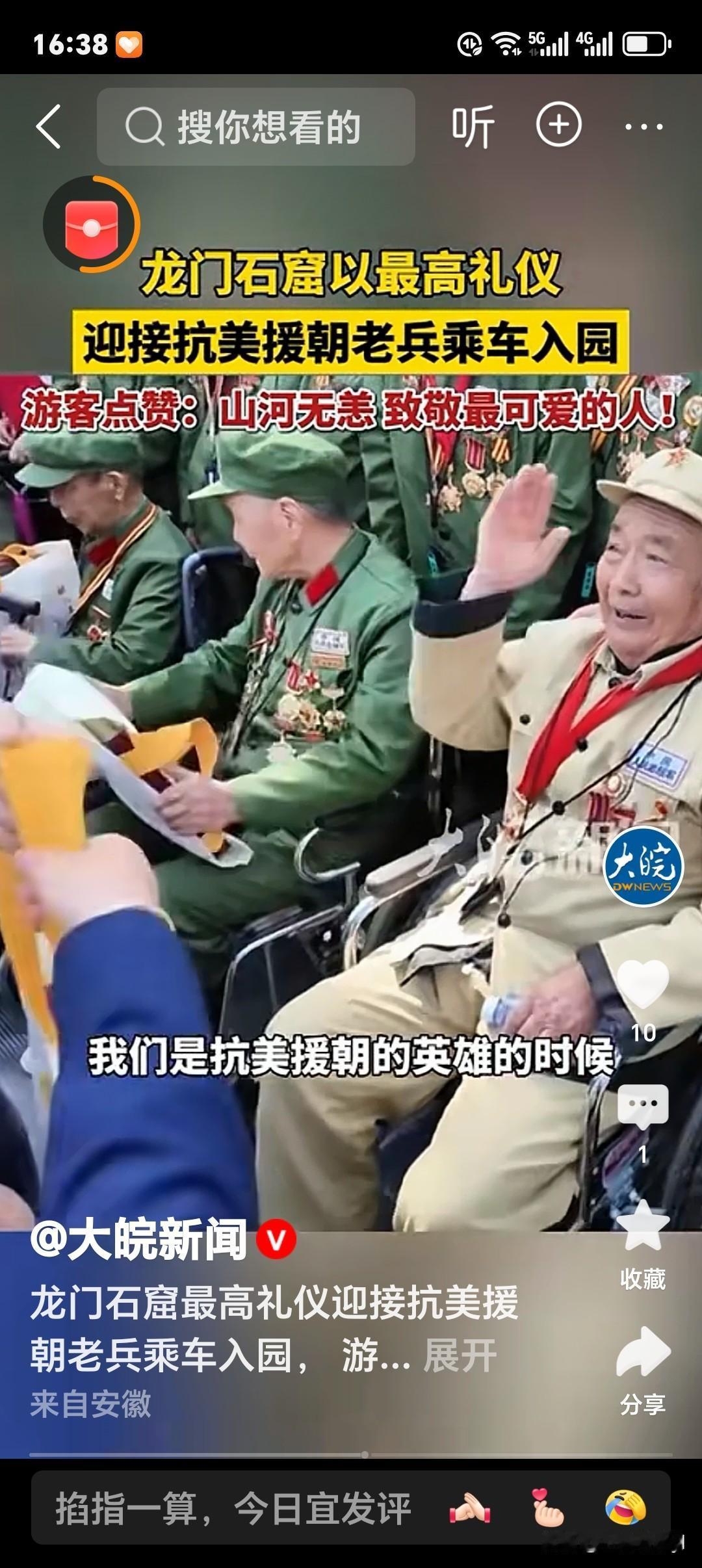 这些老英雄是我们的国宝,没有抗美援朝的立国之战,没有这些志愿军战士的浴血奋战,哪有我们现在的幸福生活。