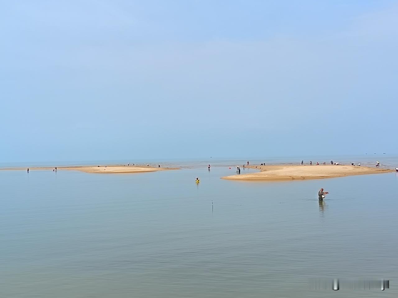 站在桥上就能看到海岸沙滩上和浅海里有很多男女老少在赶海,我也走到海边看看他们在干什么?