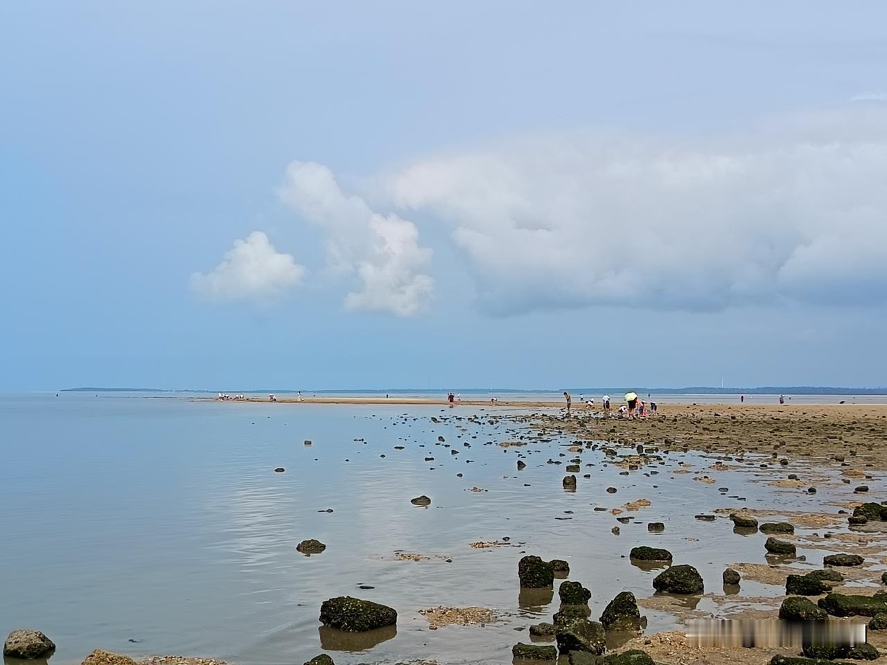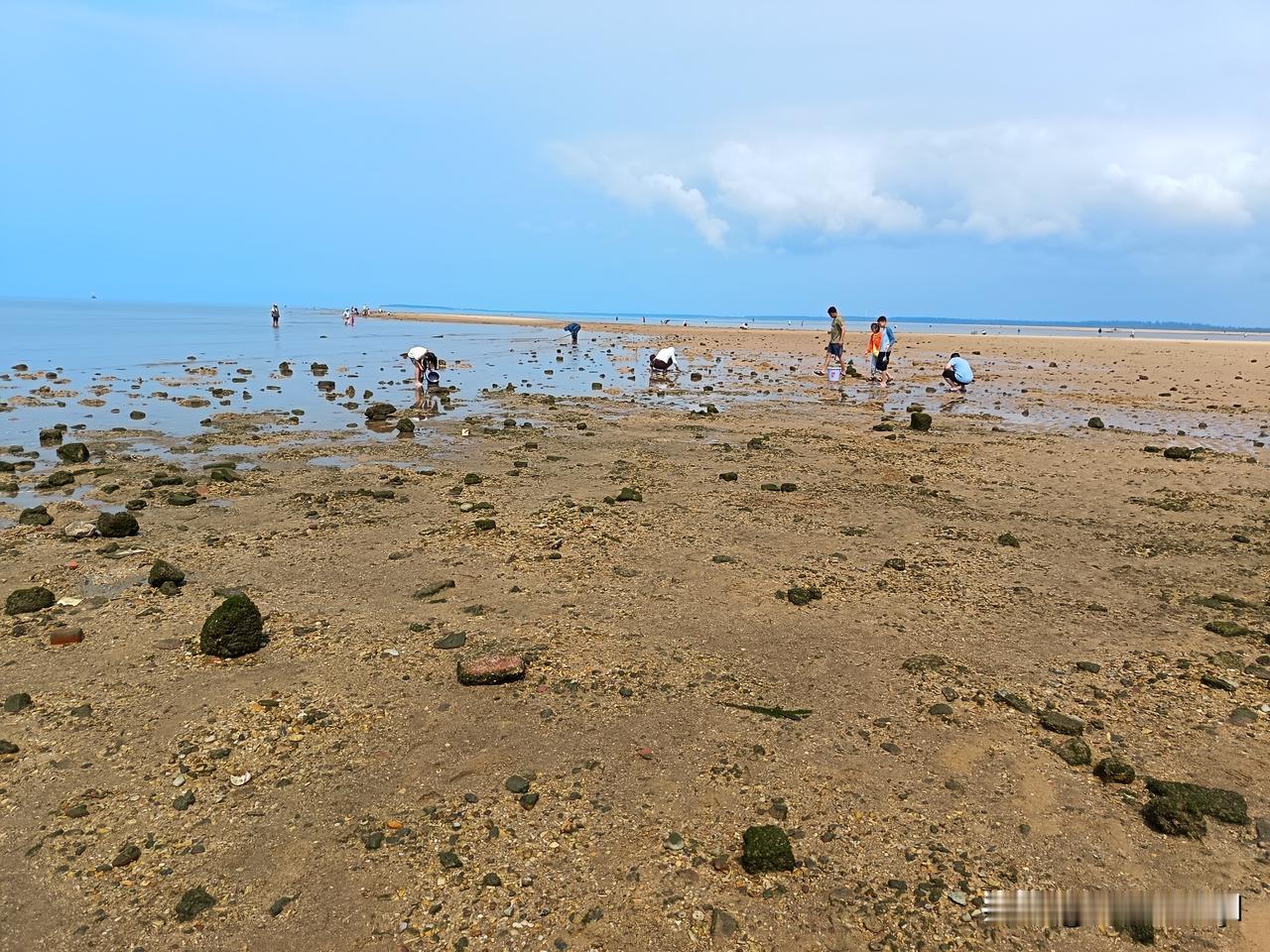 一天天一年年总有人来赶海,人比海货多,所以大多数人都没啥收获,但是过程比结果更重要,看着蔚蓝的大海,水天一色就会心胸开阔,心旷神怡,如果能有收获就会更加欣喜若狂,我自己捡到了一条死去的小鱼个两个可爱的鹅卵石,心情都很激动的。