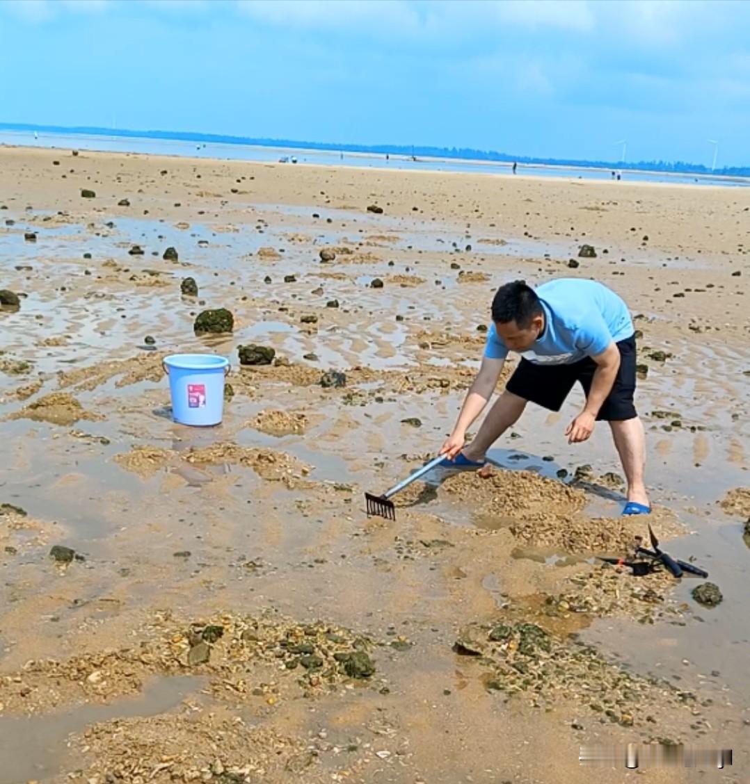 他们有人拿着带齿的耙子在沙滩上挖着,偶尔会有一些不知名的贝类🐚被找到,遇见一位收货颇丰的大姐,她说做鸡蛋羹时把这些贝类放进去味道很鲜的。