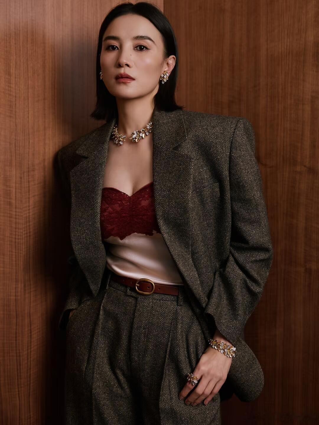 宋佳昨天这件红色蕾丝内搭和卡地亚珠宝真美,就是不穿这件廓形外套更好了。