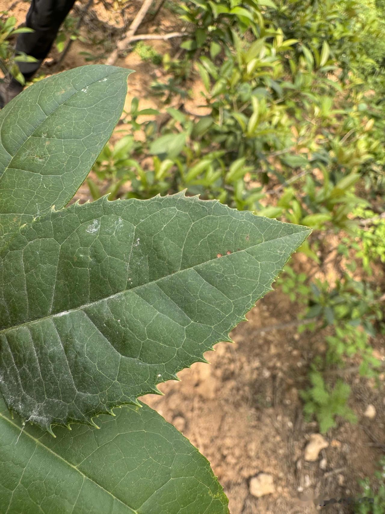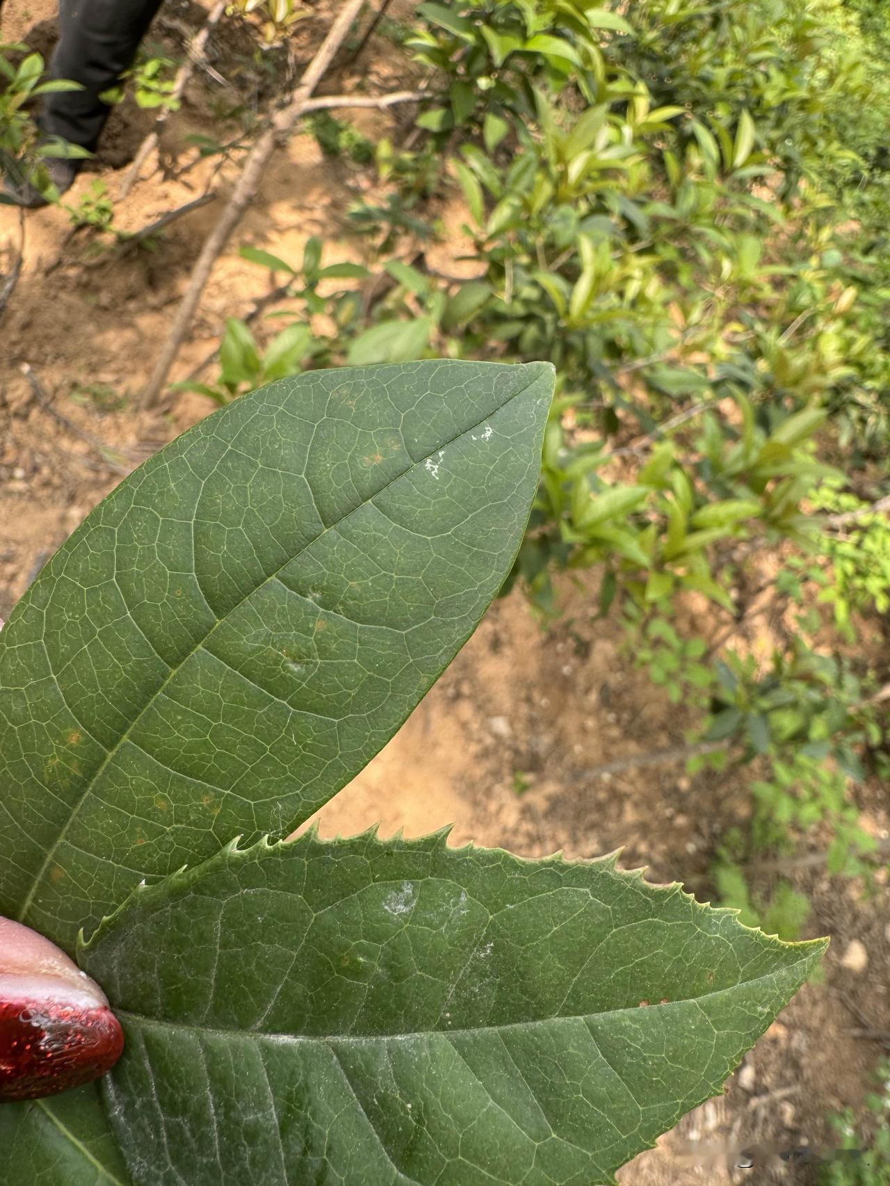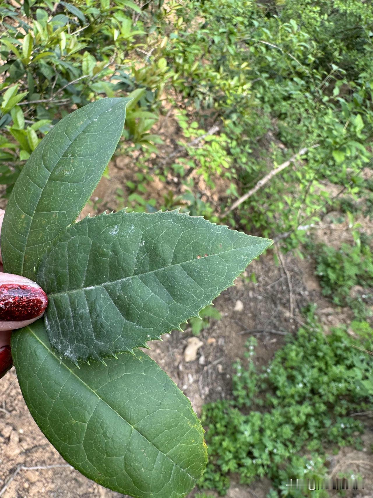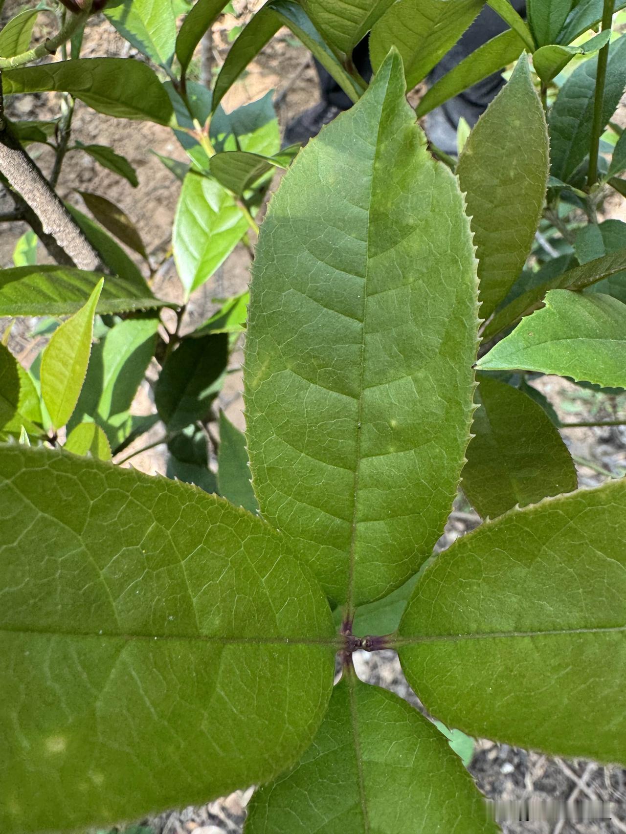 看看这三片叶子。它不是普通的三片叶子,而是三种不同的桂花树的叶子。