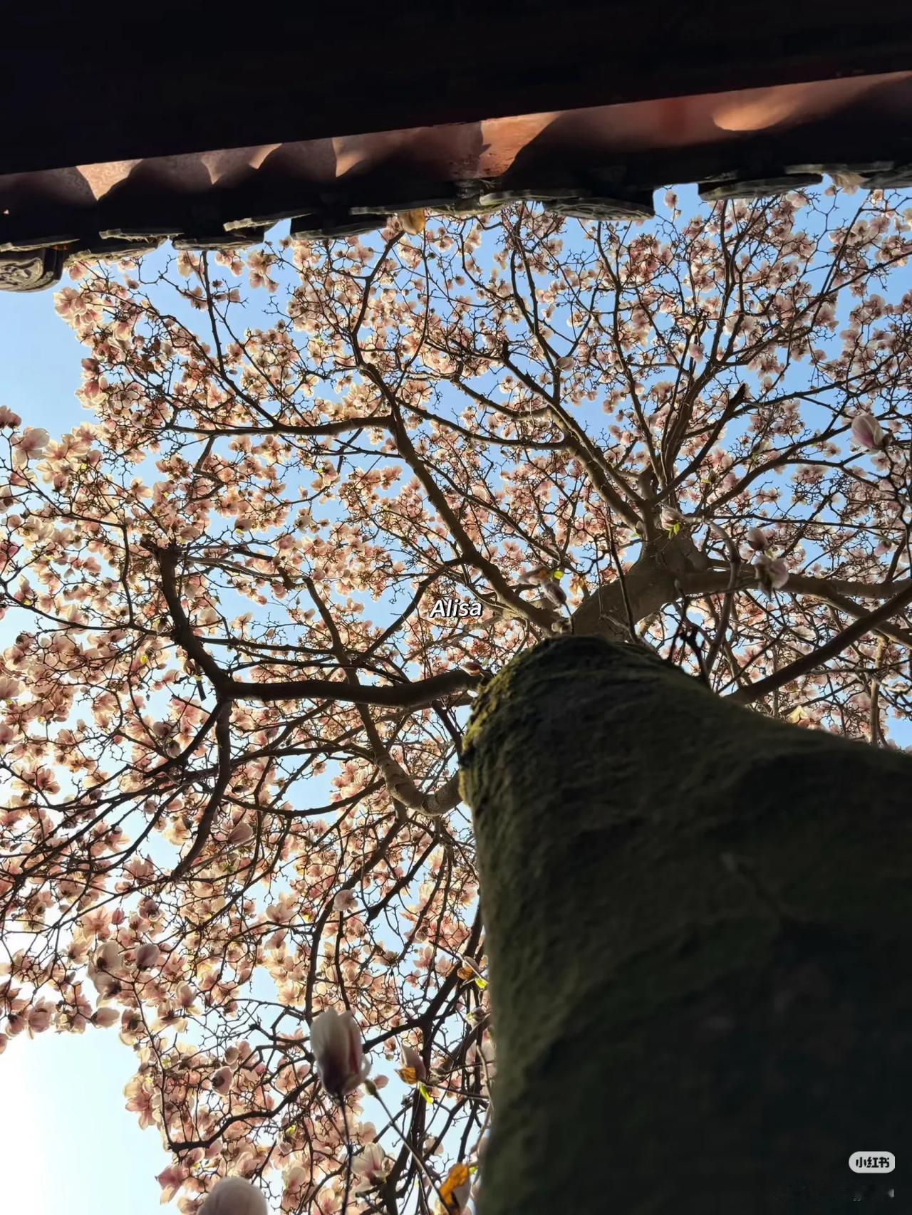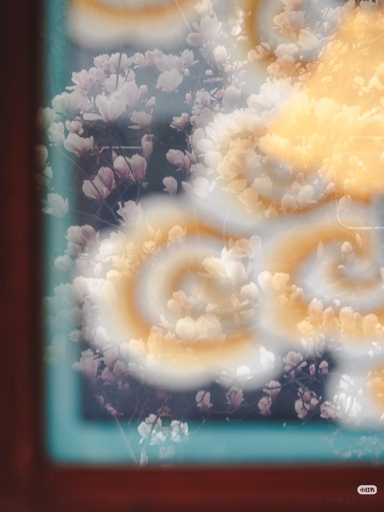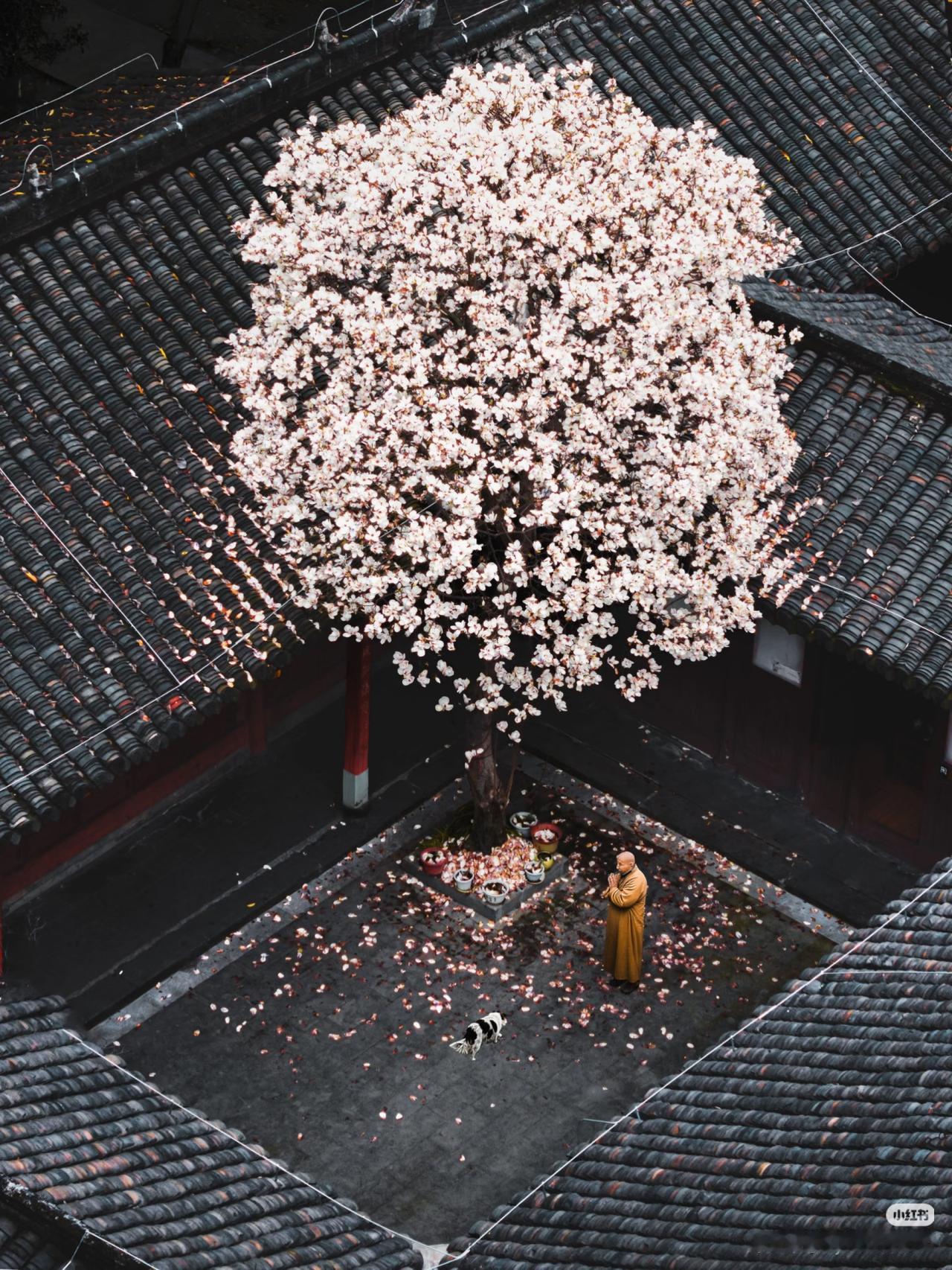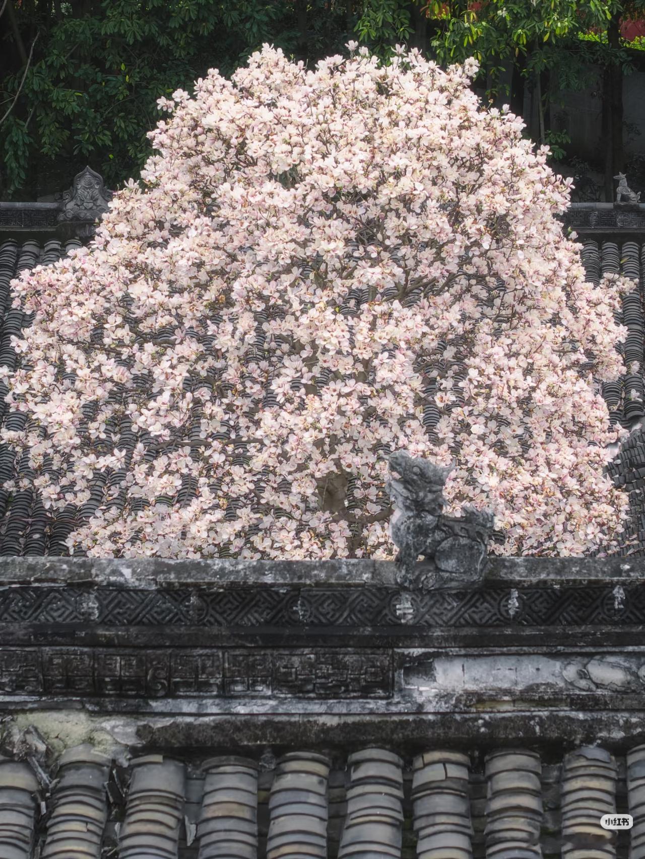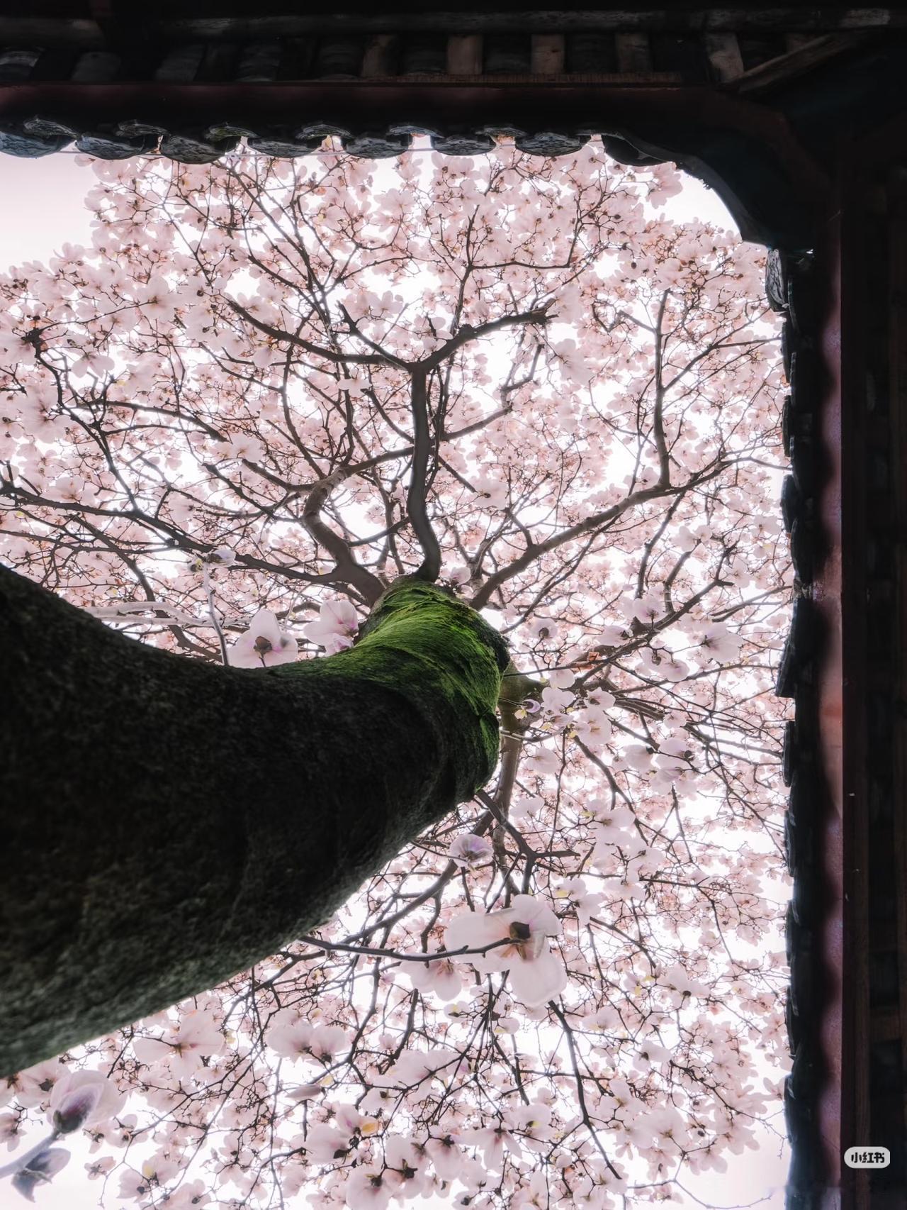 当玉兰花在寺庙中绽放,寺庙的门窗就成了一幅幅画框,似乎每个角度都透露着中式浪漫。