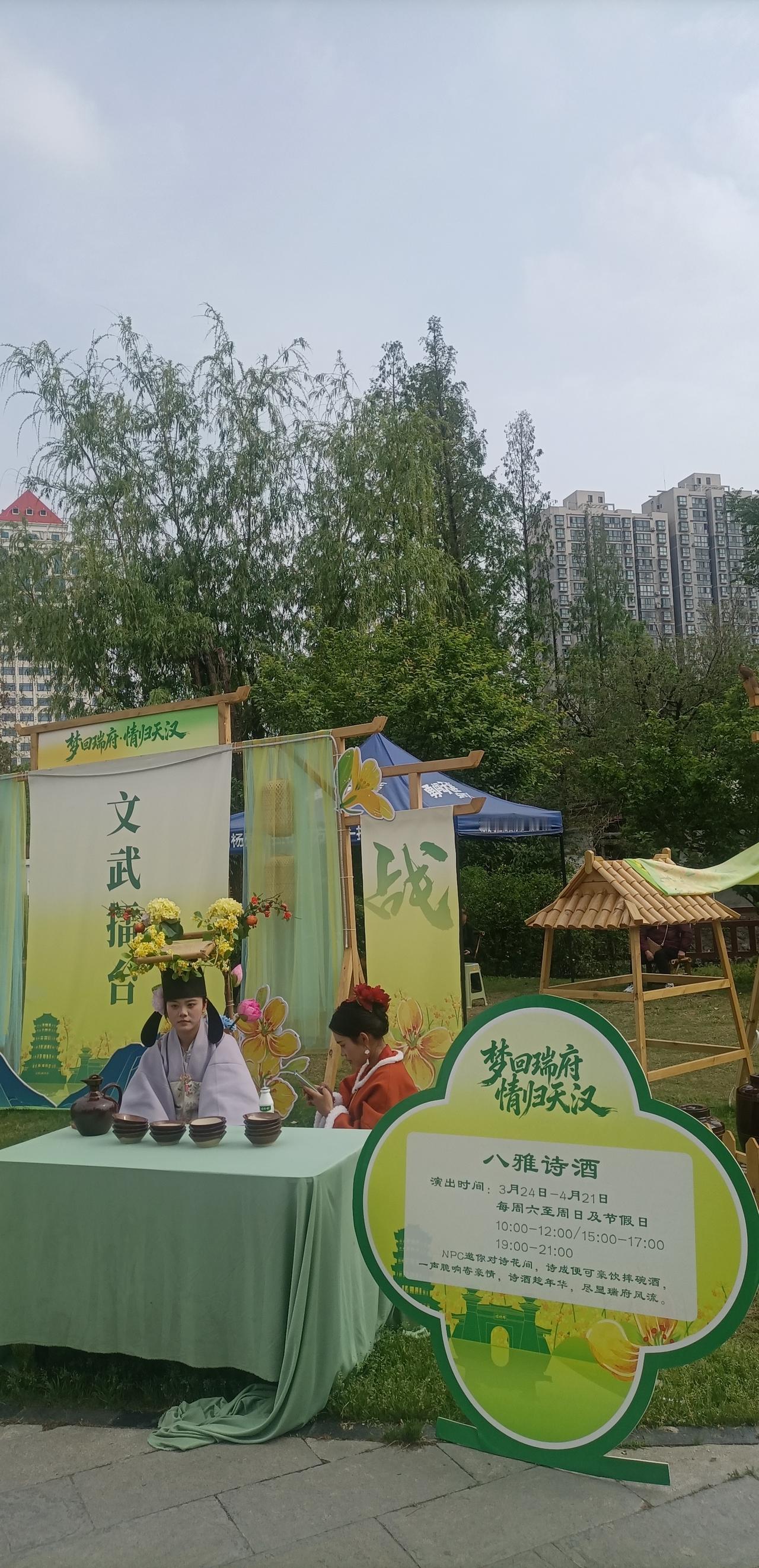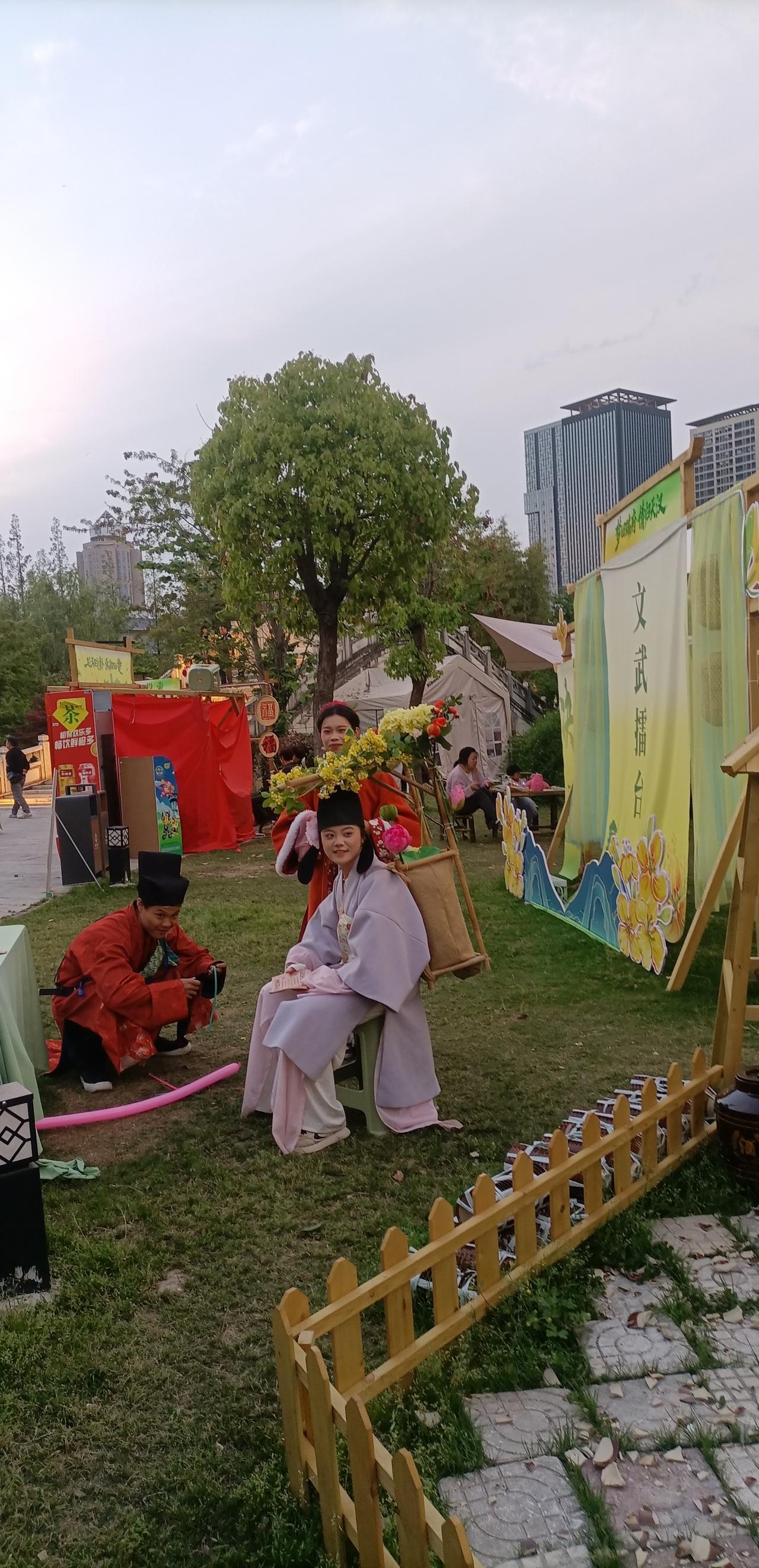 汉中市油菜花节期间,明·瑞王府后花园、被整修后的今汉中市汉台区莲花池公园,面貌一新,穿汉服或明朝服饰的年轻人三三两两的在公园漫步,让游人感受到了明朝的景象。