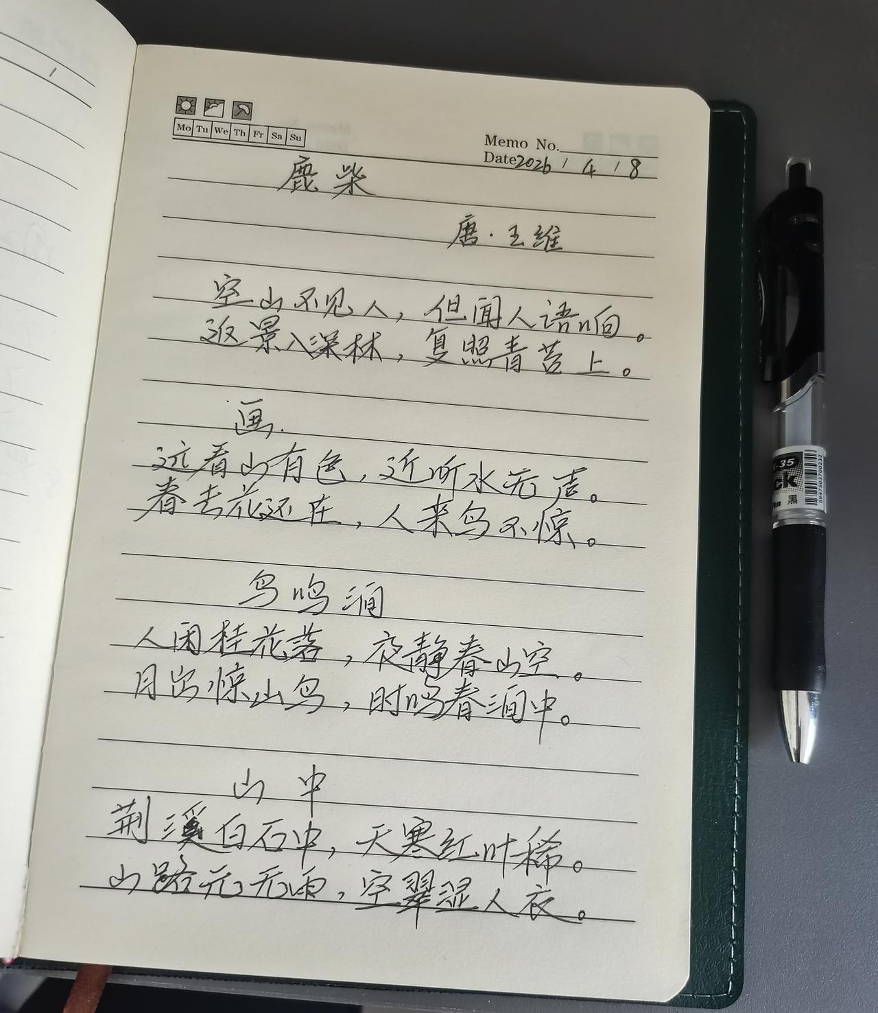 我虽然不会写诗,可我会写头条呀!经常参与抄书打卡,早晨早早起来,朗诵并抄写王维大诗人的4首好诗,特别喜欢且对应心境。
