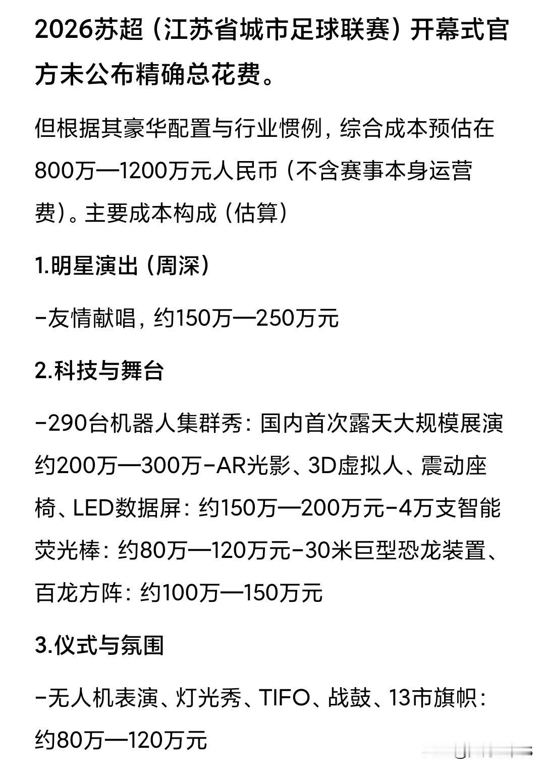 有网友预估出这次苏超开幕式的花费,涵盖: