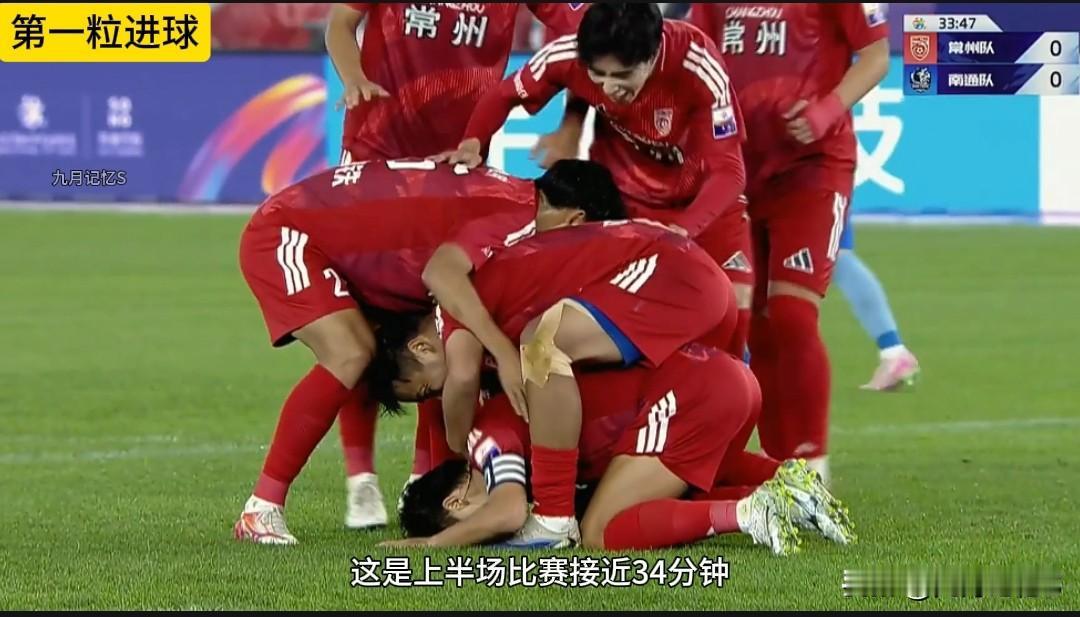 常州队的第一粒进球是上半场34分钟的定位球,一击命中。把常州队的士气拉满!
