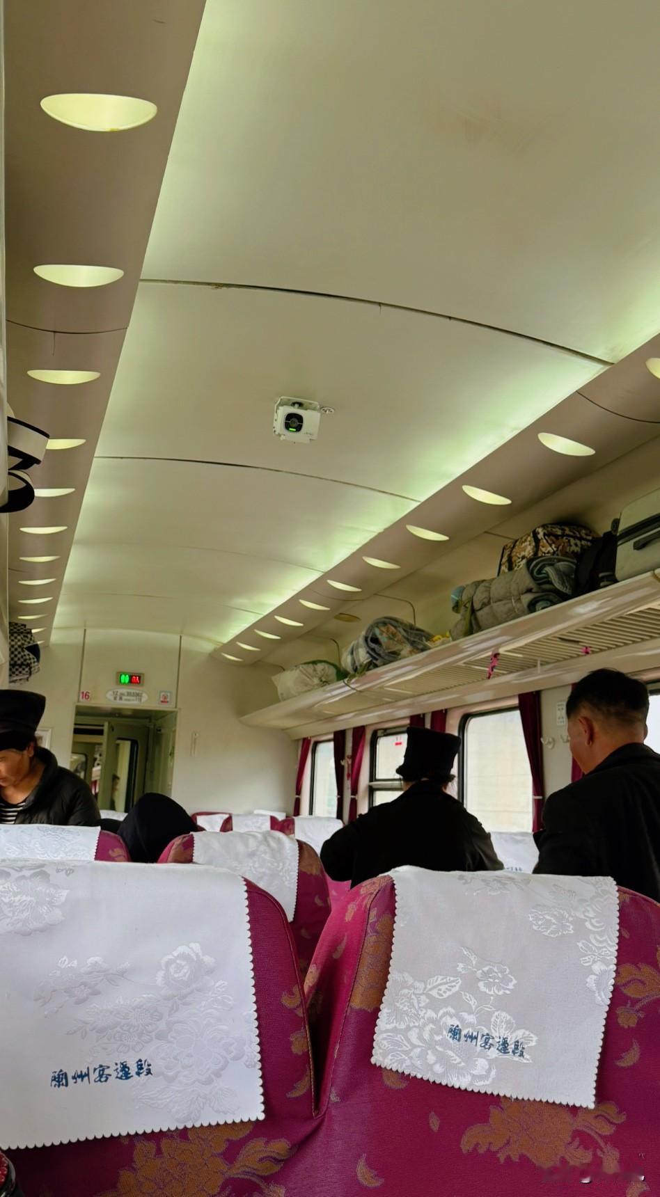 绿皮车上人少极了,座位旁边的女人戴的帽子高度至少20公分,不知道这是哪个少数民族的风格?