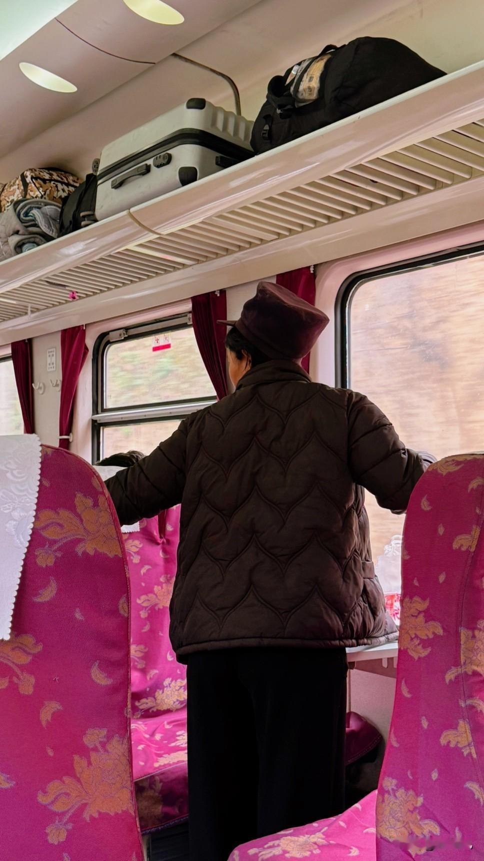 和同学相约自由行:穷游。 绿皮车上人少极了,座位旁边的女人戴的帽子高度至少20