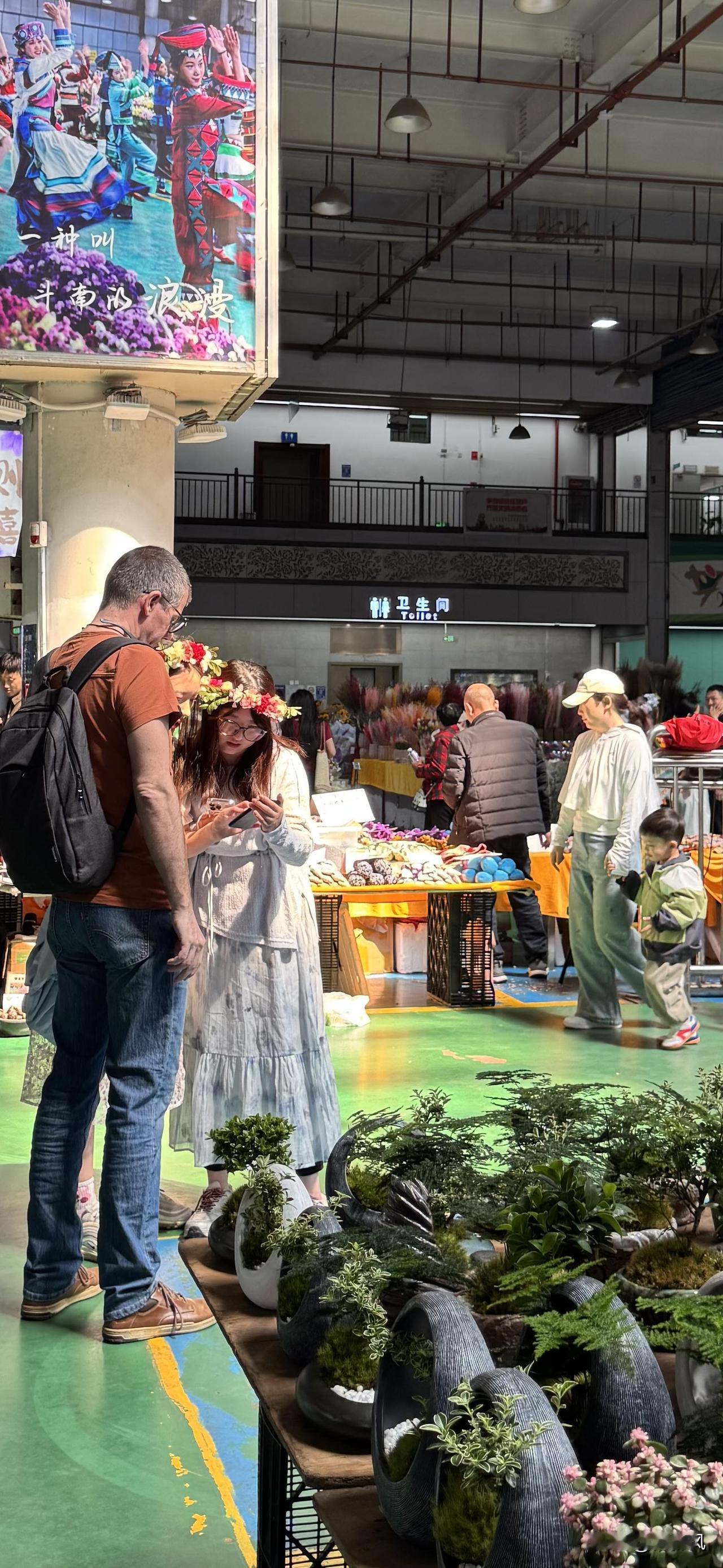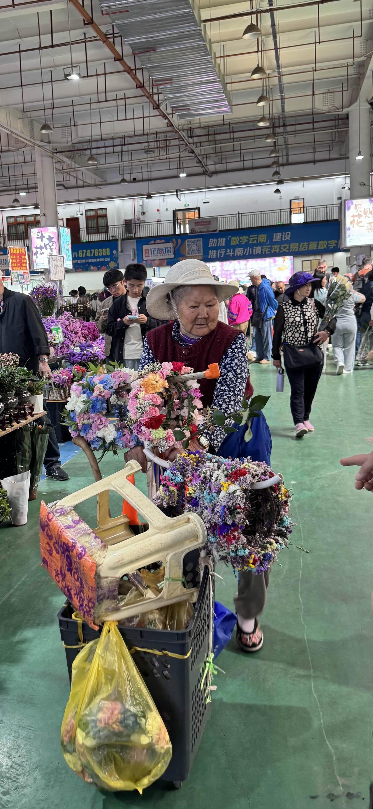 到昆明看到一个小生意,批发鲜花回本地卖。 昆明斗南花市,赏花的男男女女陶醉在花