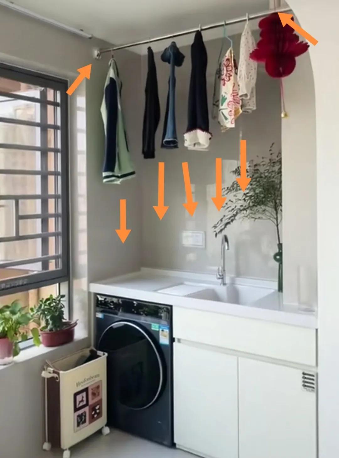 阳台晾衣杆儿竖向设计滴水不漏。